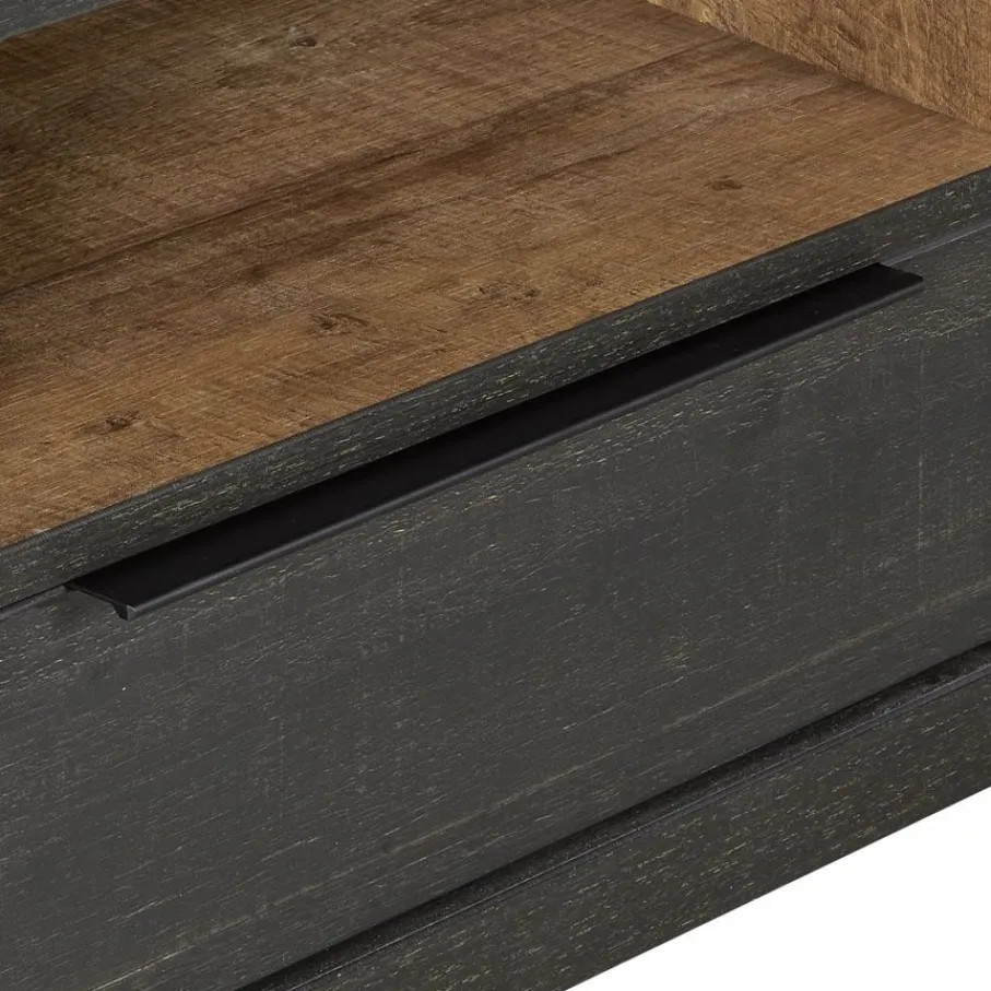 - Zwarte houtlook met accent in teakkleur