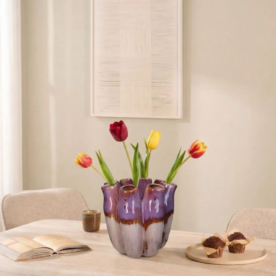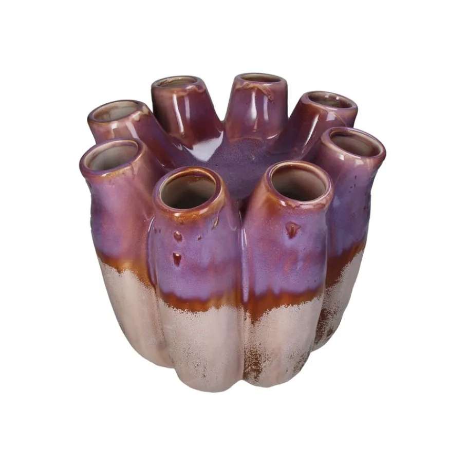 Vaas Mina zorgt voor nét dat beetje extra sfeer in jouw interieur en is hiermee je nieuwe favoriete woonitem! Deze prachtige vaas van stevig keramiek heeft een elegant ombre effect in warme paarstinten. Met een unieke, organische vorm voegt Mina een speels en modern element toe aan elke ruimte. Of je nu kiest voor een weelderig boeket of een paar simpele takken; vaas Mina maakt van elke bloem een kunstwerk. Vaas Mina staat prachtig op je eettafel, dressoir of zelfs in de vensterbank en is dé manier om jouw interieur een frisse, trendy touch te geven.