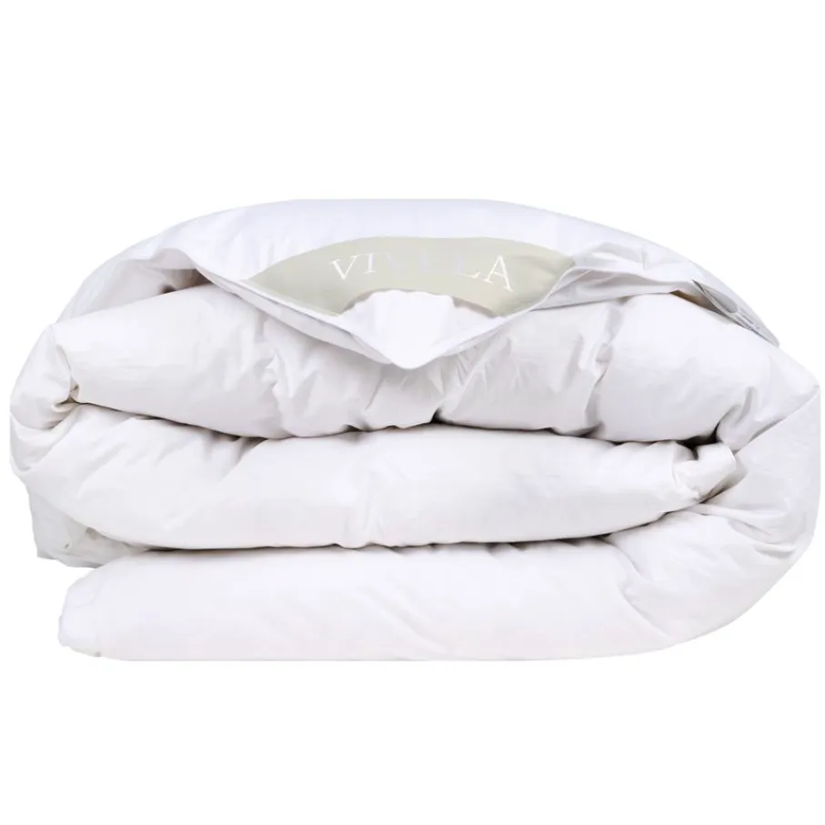 Het Vivela dekbed Luxury Enkel heeft een vulling van 85% veertjes en 15% dons, met een vulgewicht van 2700 gram. De vulling voelt aangenaam soepel aan en heeft zowel een isolerende, als een ademende werking. Het dekbed heeft een tijk van 100% percale katoen, een luxe katoen soort. Deze stof voelt heerlijk zacht en glad aan, en heeft een goed ademend vermogen. De dichte weving draagt bij aan de hypo allergene eigenschap van dit dekbed.