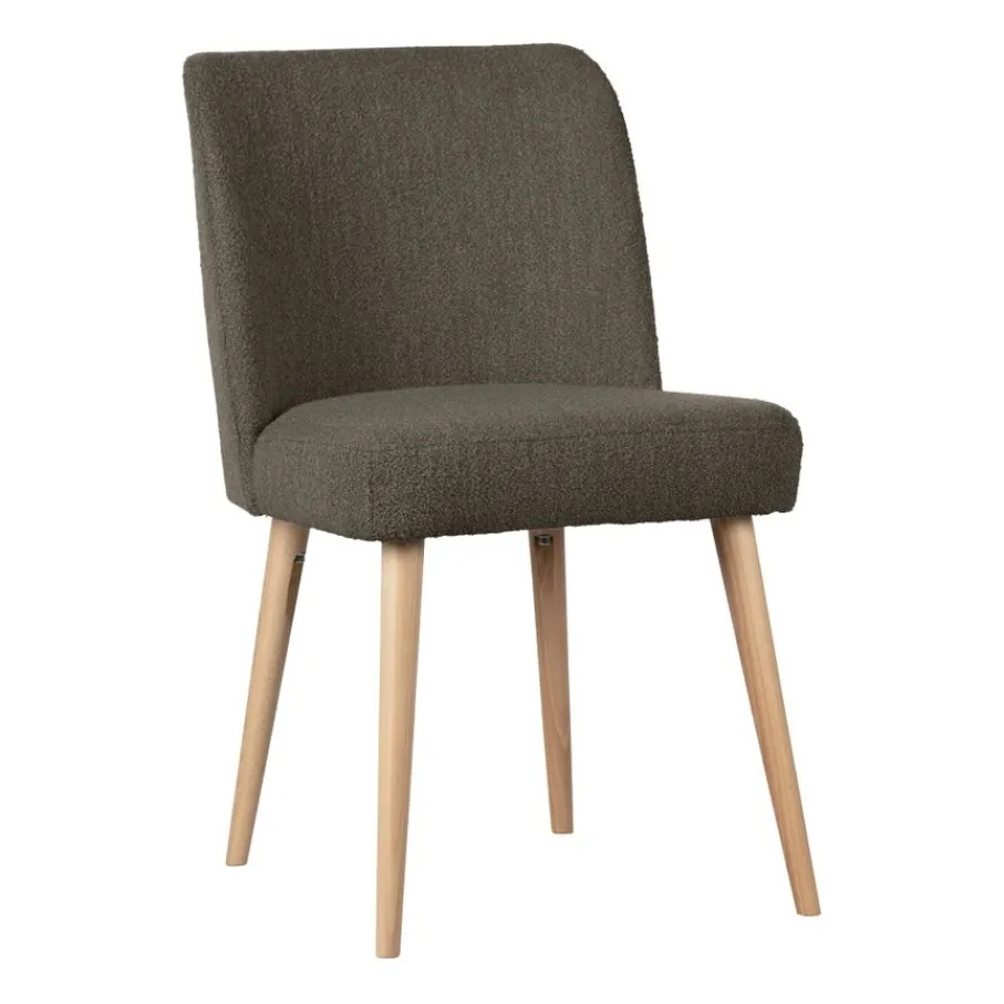 - Zachte bruine bouclé en beukenhouten poten