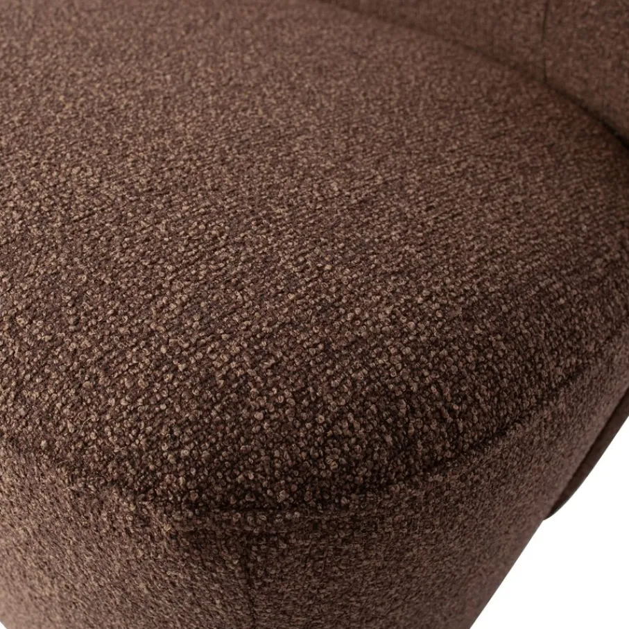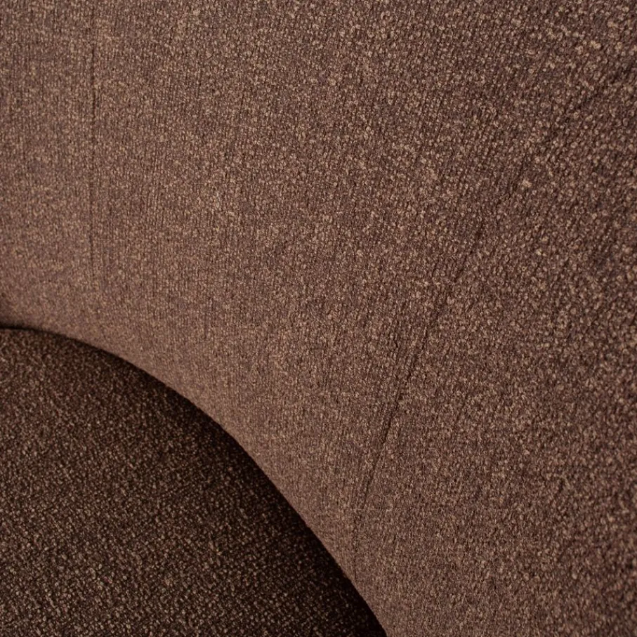 De fauteuil is gestoffeerd met een bouclé stof in een gemêleerde bruine kleur. Deze sterke stof is gemaakt van 100% polyester en is geschikt voor intensief woongebruik.