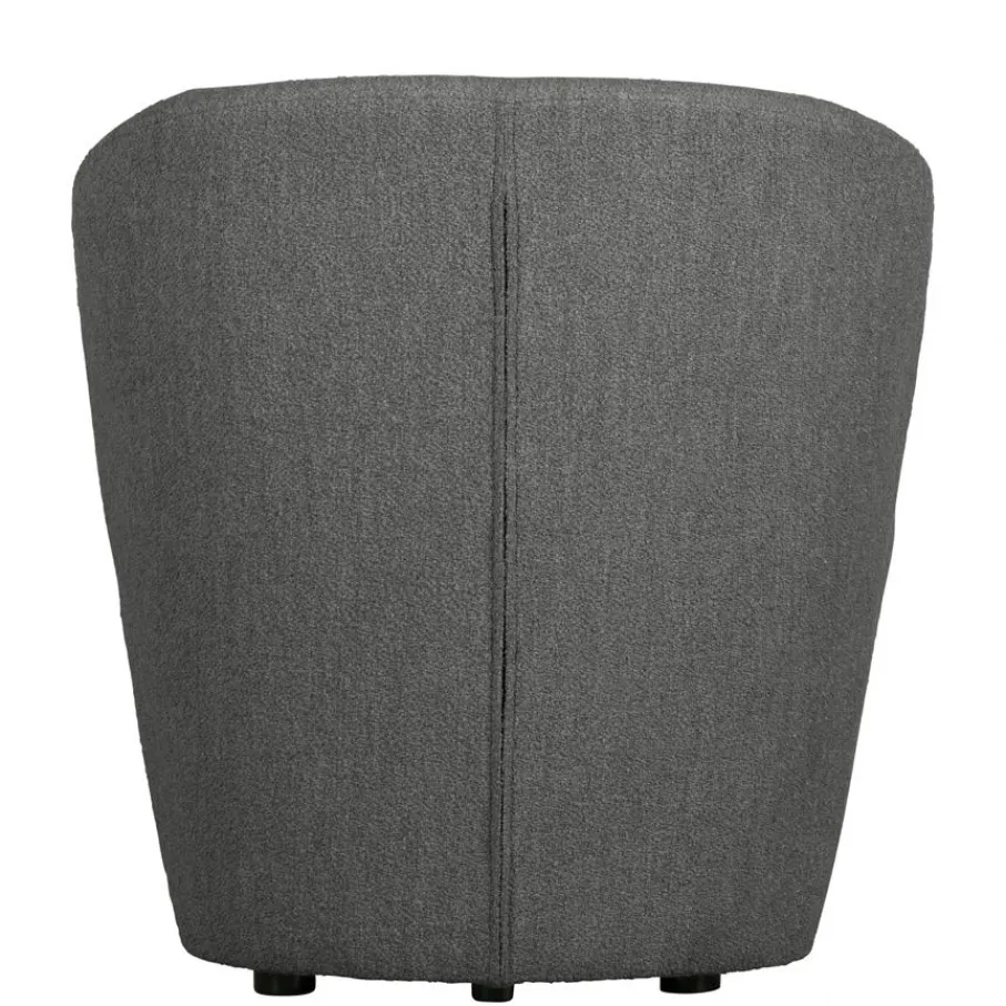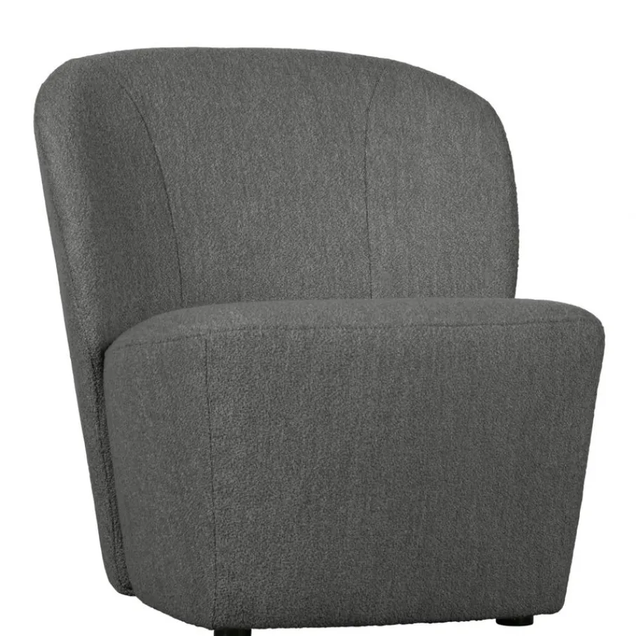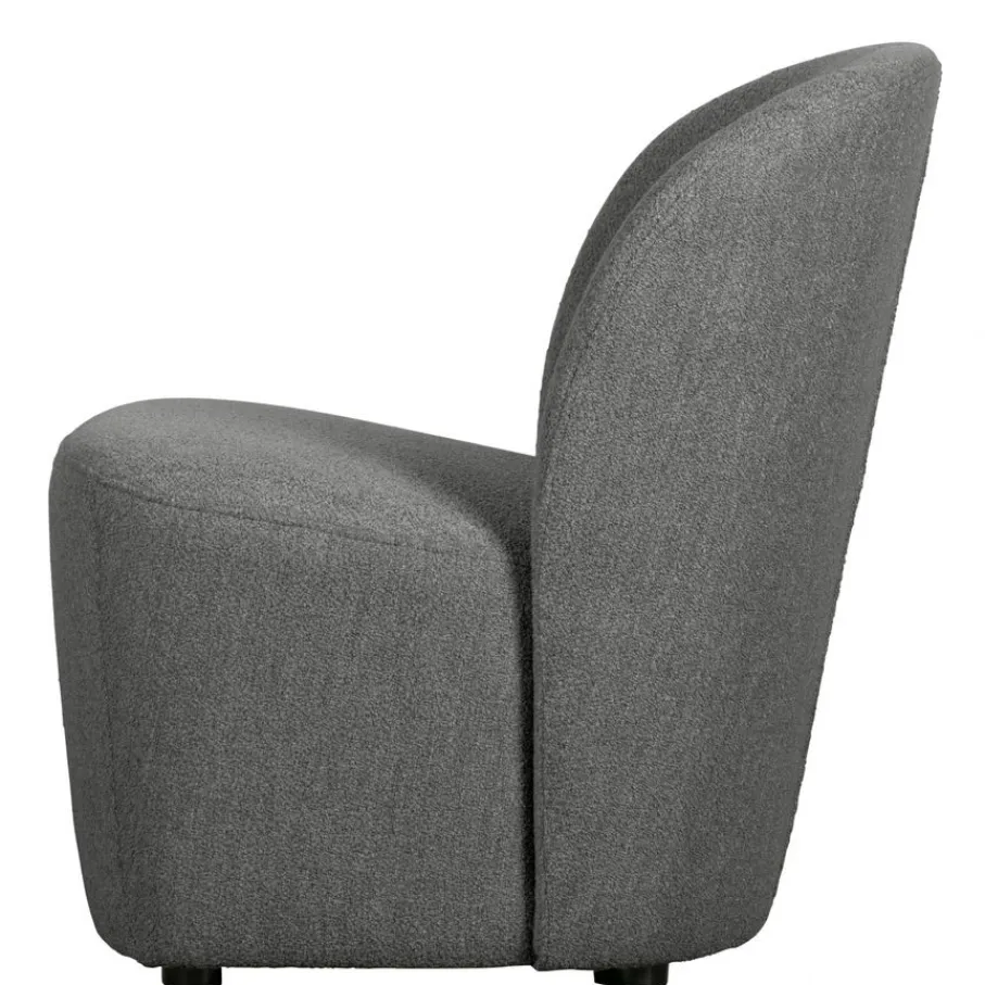De fauteuil is gestoffeerd met een zachte bouclé stof in een staalgrijze kleur. Deze sterke stof is gemaakt van een mix van 96% polyester en 4% polyacryl en is geschikt voor intensief woongebruik.