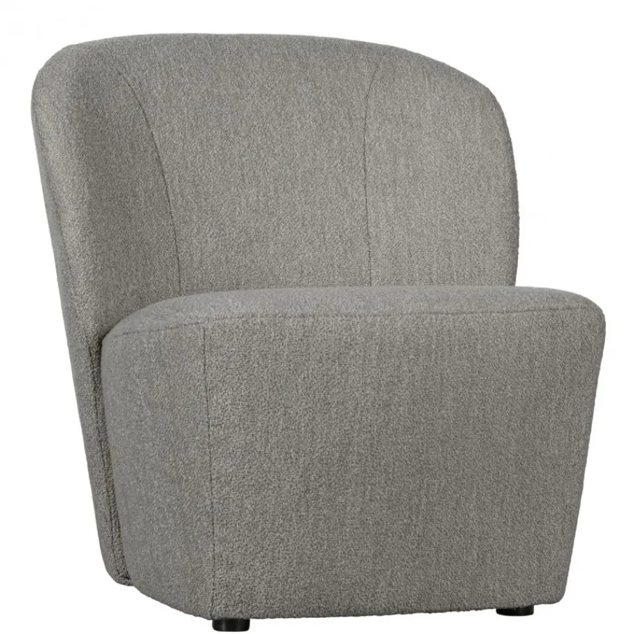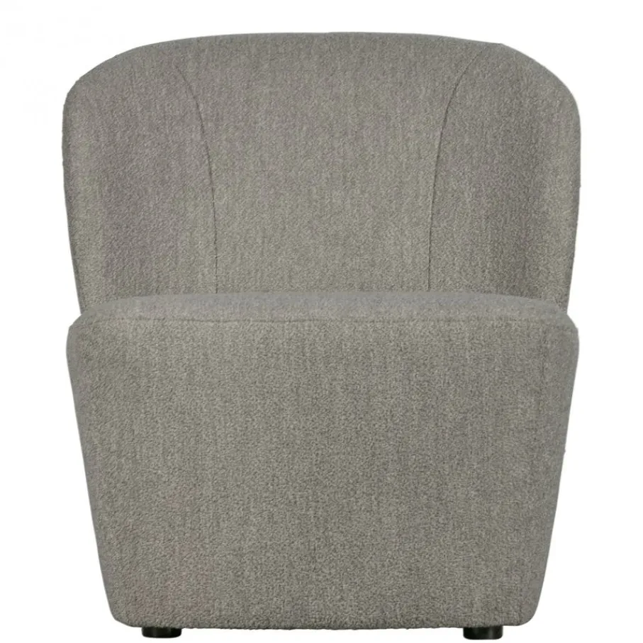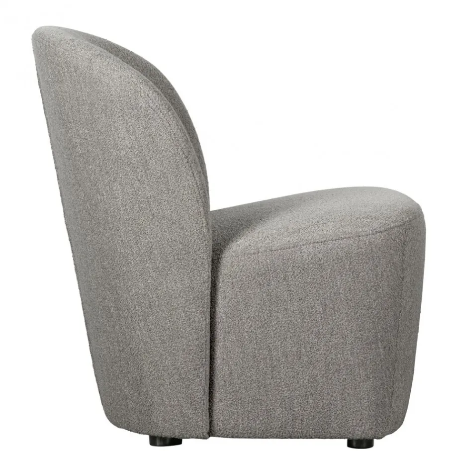 De fauteuil is gestoffeerd met een zachte bouclé stof in een middelgrijze kleur. Deze sterke stof is gemaakt van een mix van 96% polyester en 4% polyacryl en is geschikt voor intensief woongebruik.