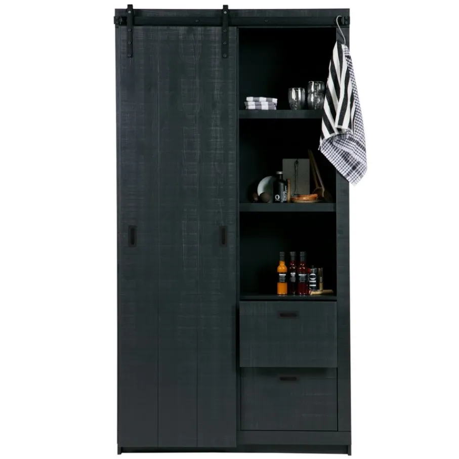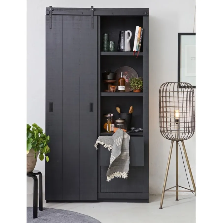 - Geef je interieur een stoere upgrade met deze unieke Barn kast, compleet met opvallend schuifdeursysteem en robuuste zwarte accenten voor een industriële touch.