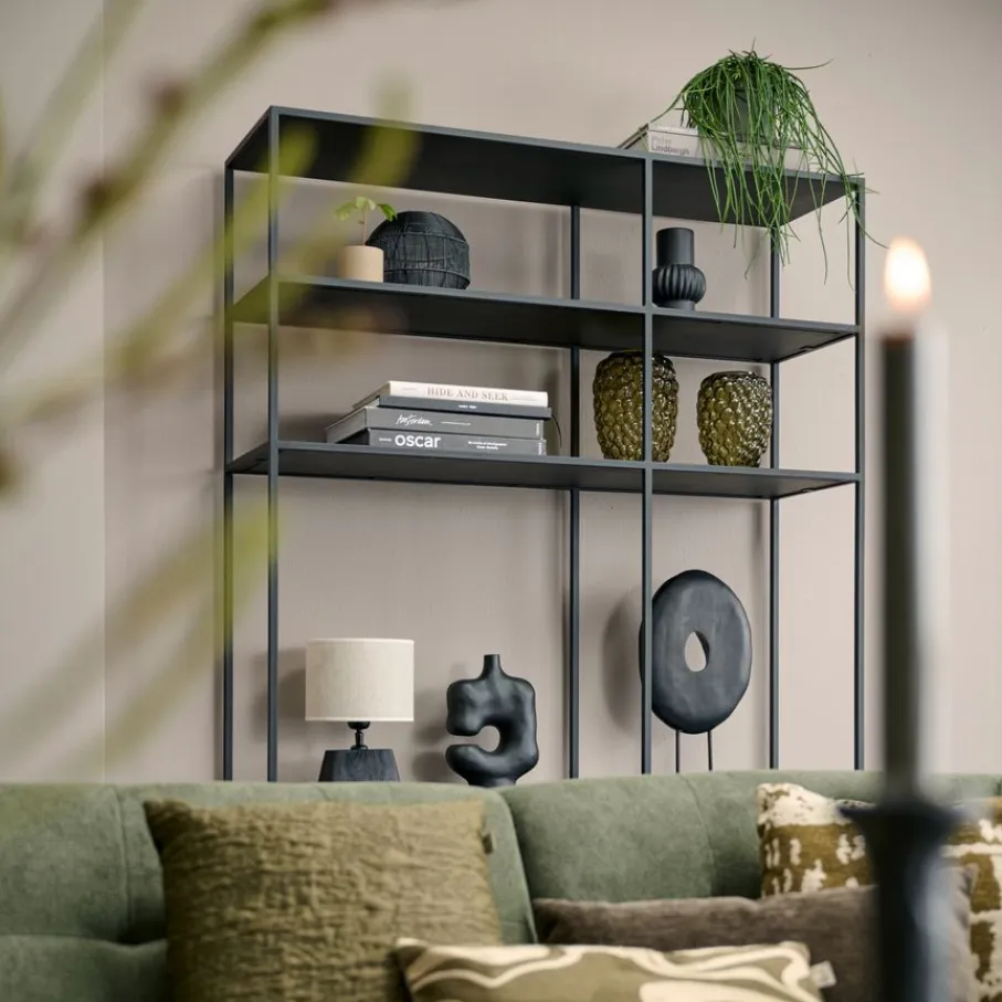 - Geef je interieur een stoere, industriële touch met het strakke zwarte metalen frame en de elegante zwarte MDF planken.