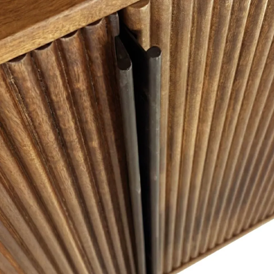 - Geef je interieur een stijlvolle boost; het warme mangohout en de zwart metalen accenten maken deze kast tot een echte blikvanger.