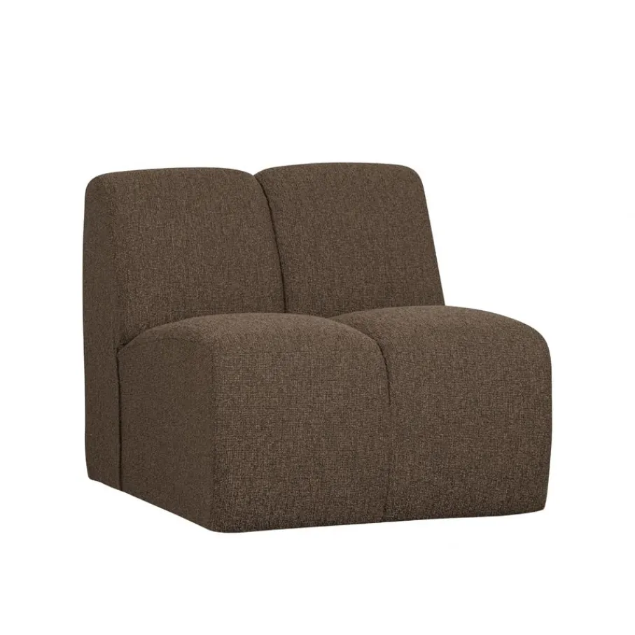 De 1-zitsbank is bekleed met een zachte bouclé stof met een stevige grip. Deze elegante stof van 100% polyester heeft een Martindale van 100.000, wat betekent dat de stof geschikt is voor intensief woongebruik. De stevige bouclé stof in kleur Brown Melange is een gemêleerd bruine tint.