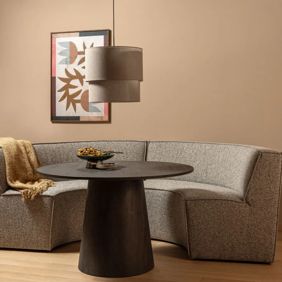 - De charmante ronde vorm van de bank komt het mooist uit bij een ovale of ronde eettafel, voor een perfect harmonieus geheel.