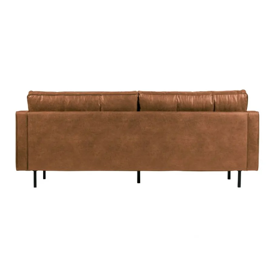 Deze Rodeo bank is bekleed met gerecycled leer in een cognacbruine kleur. Dit geeft een unieke look en is door het gebruik van restanten leer een duurzame keuze. Het bestaat voor 70% uit vezels van echt leer en voor 30% uit polyester. Dit zorgt voor een stevig materiaal met een fijn, zacht gevoel dat goed kleurvast is. Tijdens het gebruik zal het uiterlijk en de structuur van de stof zijn natuurlijke kenmerken meer laten zien, dit verandert niks aan de duurzaamheid en kwaliteit.