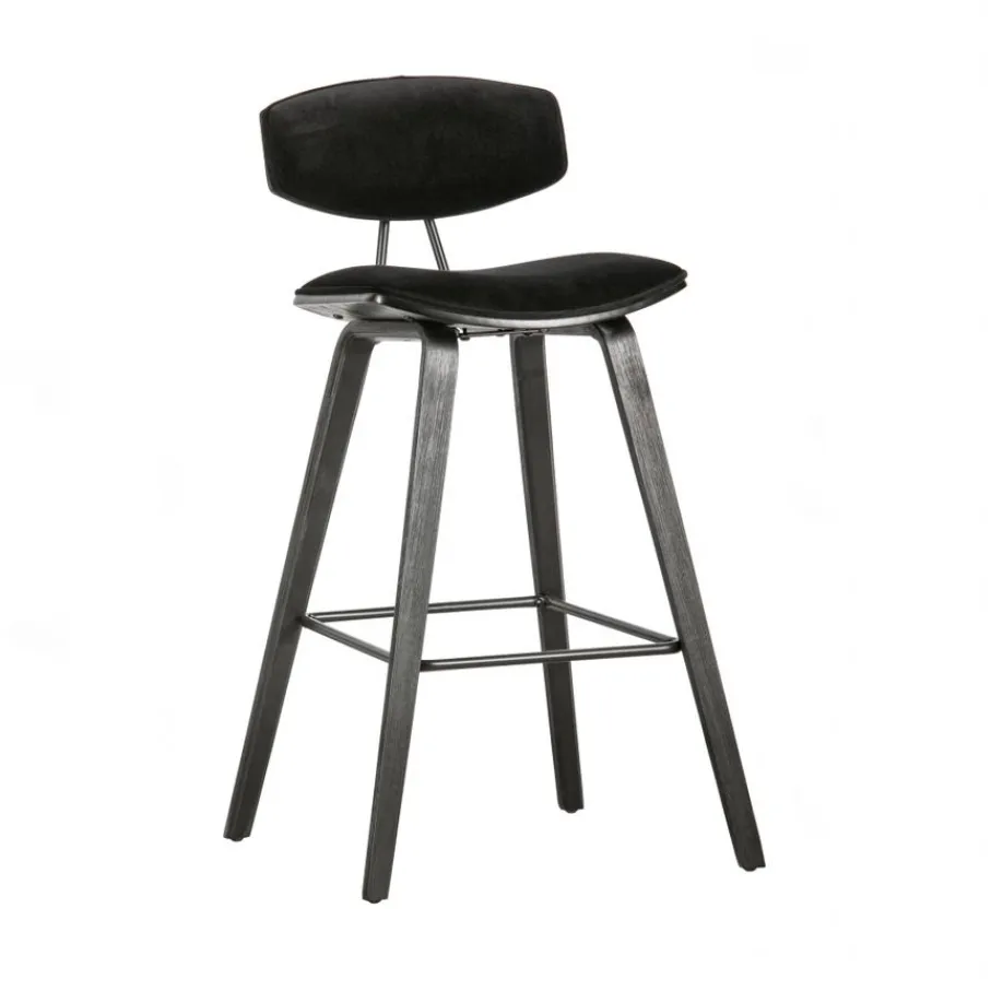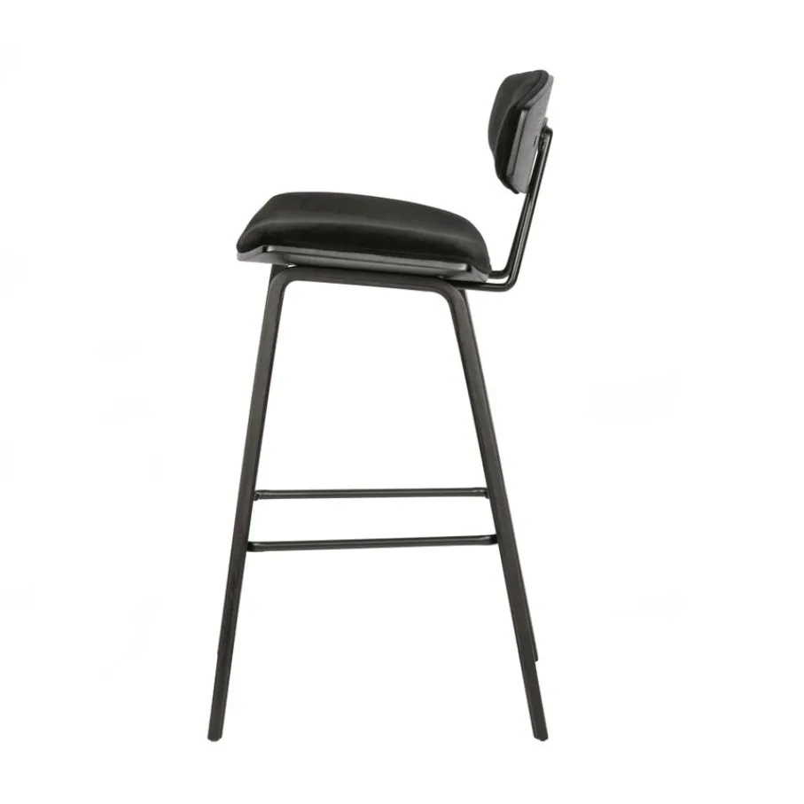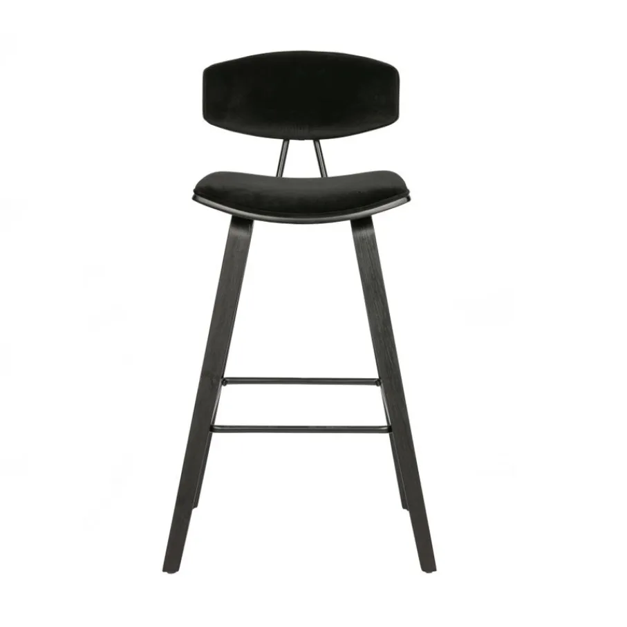 De Senn barstoel van WOOOD Exclusive heeft een modern ontwerp met stoere uitstraling. De zitting en rugleuning van Senn zijn gemaakt van zwart multiplex en bekleed met een zachte velvet stof in zwarte kleur. Het slanke frame is gemaakt van multiplex voorzien van een zwarte afwerking. Tussen de poten zit een metalen stang om de voeten comfortabel op te laten rusten.