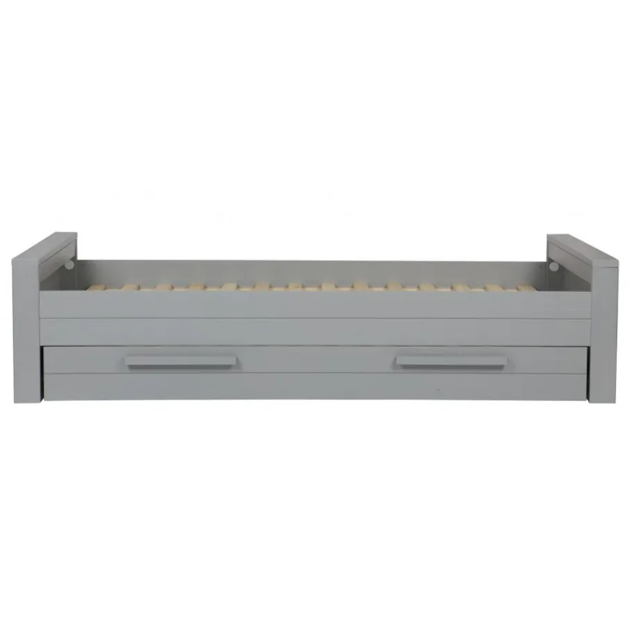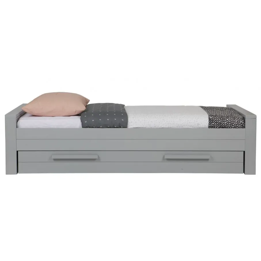 Het WOOOD Dennis bed is 219 cm breed, 95 cm diep en 53 cm hoog. Het is gemaakt van FSC gecertificeerd grenen met een geborstelde afwerking. Hierdoor worden oneffenheden, kleine scheurtjes en knoesten extra zichtbaar. Allemaal kenmerken van doorleefd hout en dit maakt ieder exemplaar uniek! Het lichtgrijze bed wordt exclusief lattenbodem en matras geleverd en moet nog gemonteerd worden.