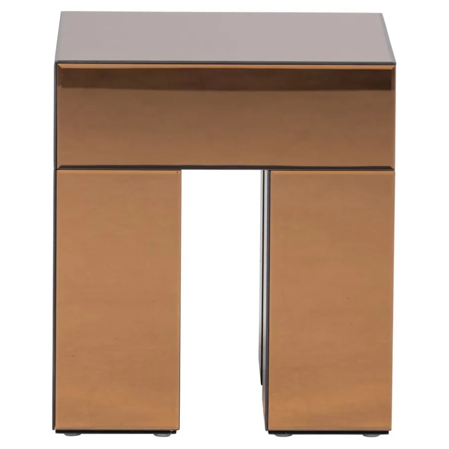 Bijzettafel Mirrox van WOOOD is een echte blikvanger in het interieur. Het ontwerp heeft een basis van FSC-gecertificeerd MDF dat wordt gecombineerd met spiegelglas in koperbruine kleur. Dat zorgt voor een het unieke karakter. Met een draagvermogen van 30 kg is deze bijzettafel niet alleen een aanwinst voor het oog, maar ook praktisch in gebruik. Of je nu een plek zoekt voor je koffie, een boek of een decoratief object; bijzettafel Mirrox is een stijlvolle toevoeging aan je woon- of slaapkamer.