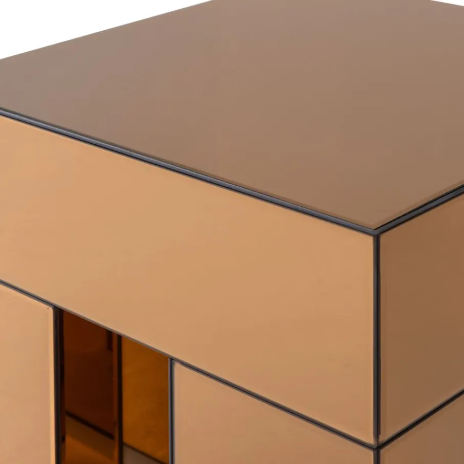 - Een echte eyecatcher: Het luxe spiegelglas in een warme koperbruine tint maakt Mirrox een stijlvolle blikvanger die direct sfeer toevoegt aan jouw interieur.