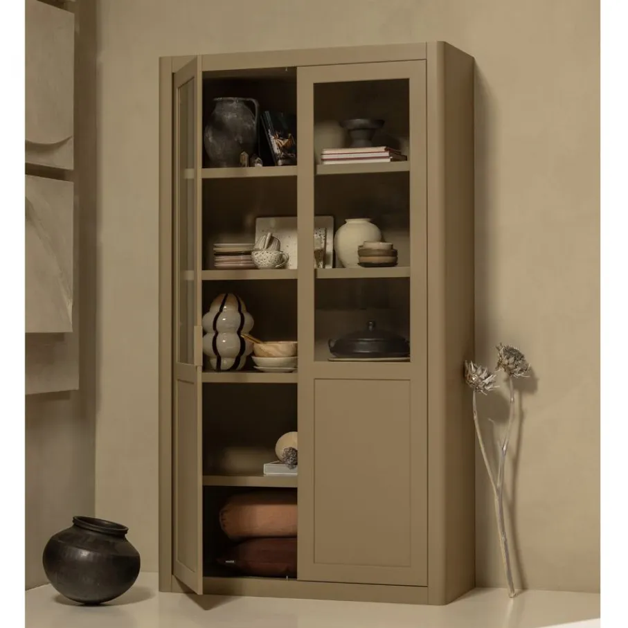 - Combineer show & opbergruimte: Achter het glas presenteer je je mooiste items, en in de dichte vakken berg je alles netjes uit het zicht op. Zo creëer je rust en sfeer tegelijk!
