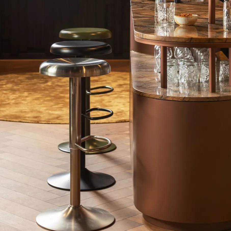 - Het ronde zitvlak is perfect voor aan de bar, maar biedt een andere zitervaring dan een brede, diepe stoel.