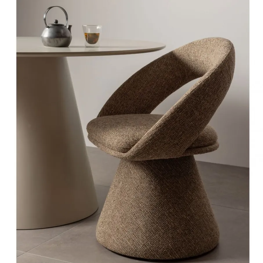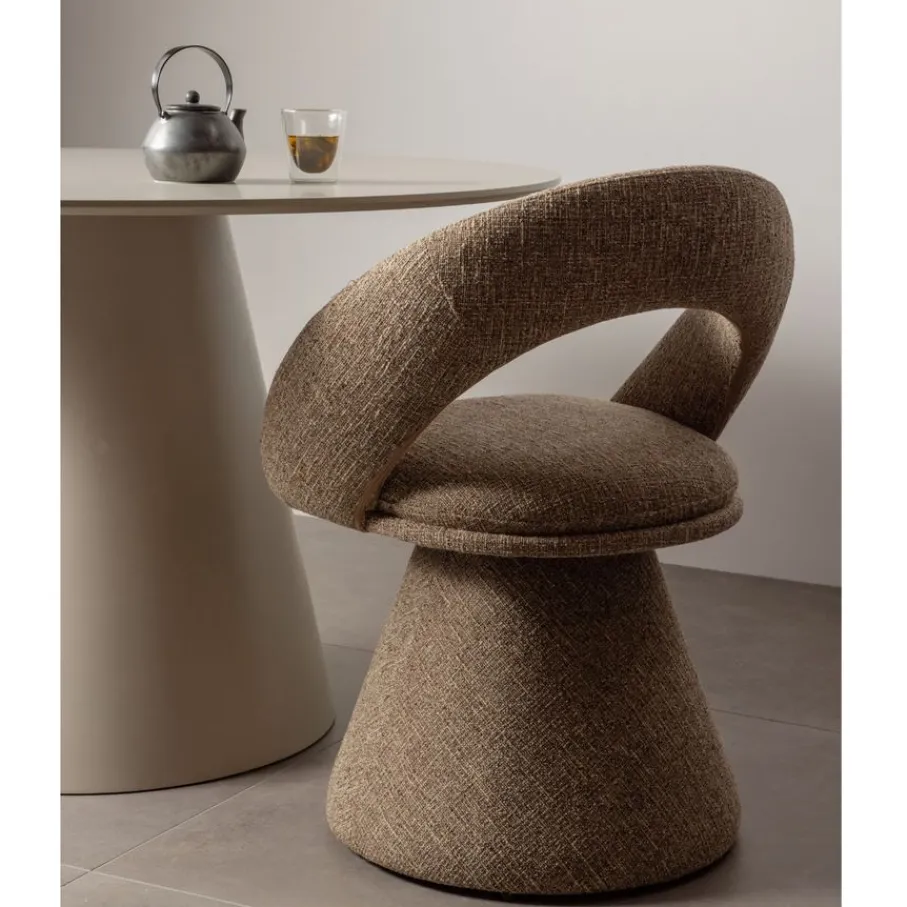 - Zachte en luxe uitstraling: De volle stoffering met rijke weving en gemêleerde stof geeft de stoel een chique en warme touch.