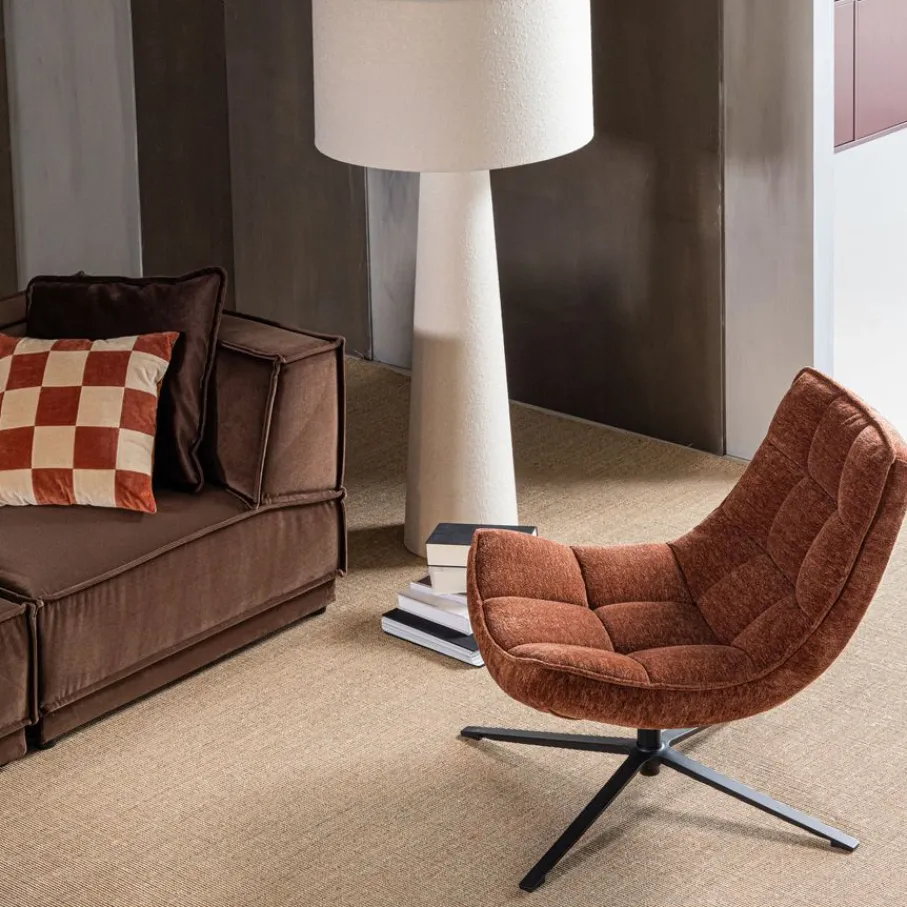 Draaifauteuil Maudi van WOOOD combineert een modern design met een uitnodigende uitstraling. De stoel, met zijn zachte, ronde vormen en gecapitonneerde zitting en rugleuning, is een aanwinst voor elk interieur. Dankzij de handige draaifunctie kun je je gemakkelijk door de ruimte bewegen en deelnemen aan gesprekken, wat de fauteuil zowel functioneel als sociaal maakt. Het slanke, zwarte metalen onderstel geeft het geheel een eigentijdse touch. Met draaifauteuil Maudi haal je een stijlvol en comfortabel meubel in huis.