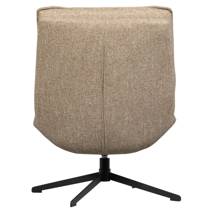 De fauteuil is bekleed met een fijn geweven stof van 100% polyester, wat de stof zowel stevig als comfortabel maakt. De zachte stof in een gemêleerde beige kleur heeft een luxe en uitnodigende uitstraling.