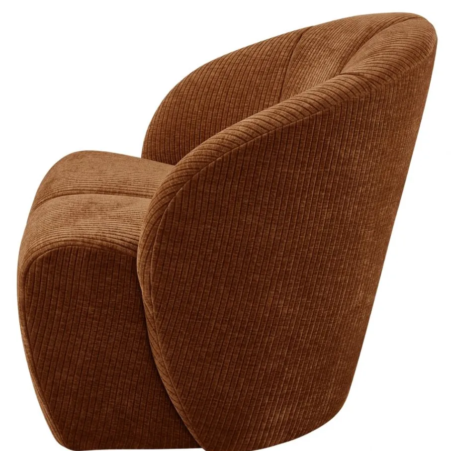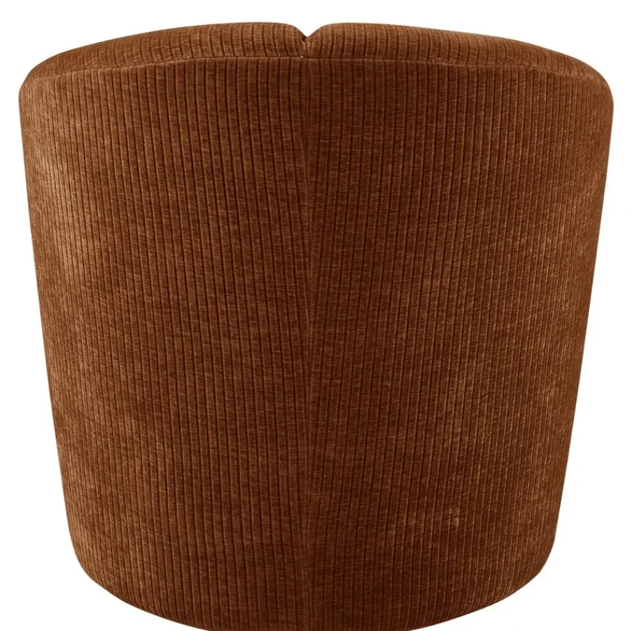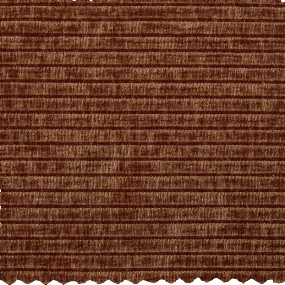 De fauteuil is bekleed met een moderne stof met een rijke textuur en een fluweelachtig uiterlijk. Deze roestbruine ribstof is aangenaam zacht en gemaakt van 100% polyester. Met een Martindale van 80.000 hoef je je geen zorgen te maken over krassen of pillen. TIP: Door af en toe te borstelen met een zachte textielborstel blijft de ribstof heerlijk zacht aanvoelen.