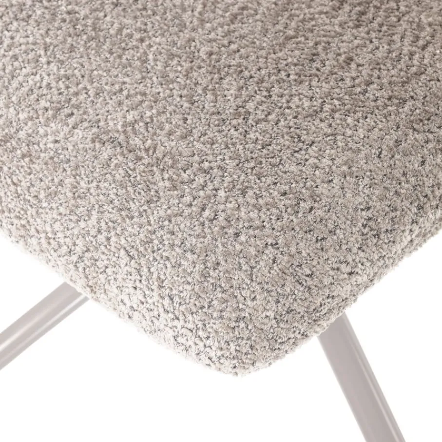 - Een moderne blikvanger met een heerlijk zachte uitstraling: De combinatie van een strak metalen onderstel en een wollige, warme grijze stof geeft je interieur direct een boost.