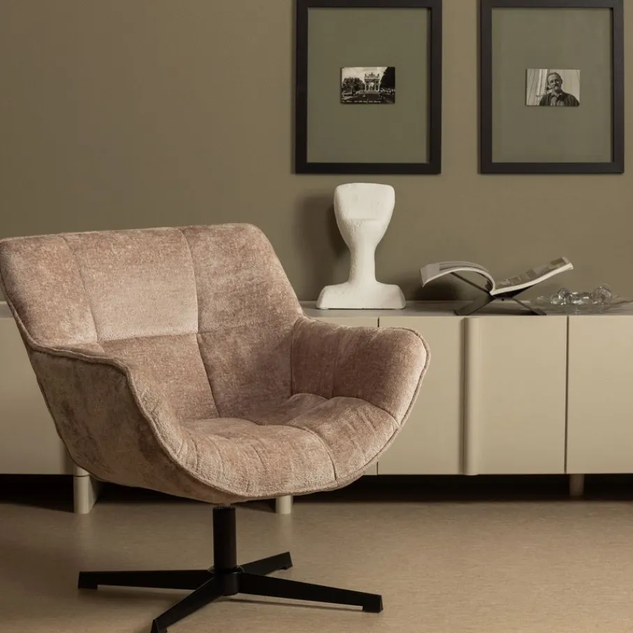- De perfecte eyecatcher voor jouw interieur: Met zijn luxe chenille bekleding en stoere zwarte draaipoot geeft Wibo elke ruimte direct een stijlvolle boost.