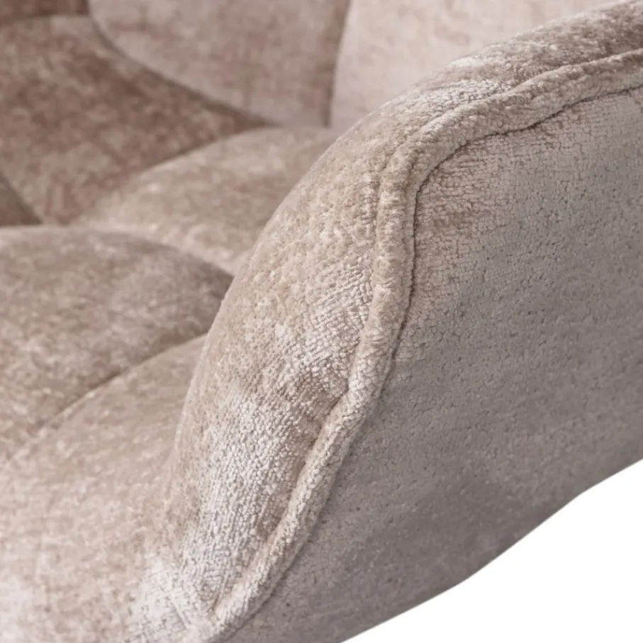 Draaifauteuil Wibo is bekleed met een chenille stof van 100% polyester met een zeer gemakkelijk onderhoud. De zachte chenille heeft een opvallende structuur, wat zorgt voor een luxe uitstraling en bijzondere glans.