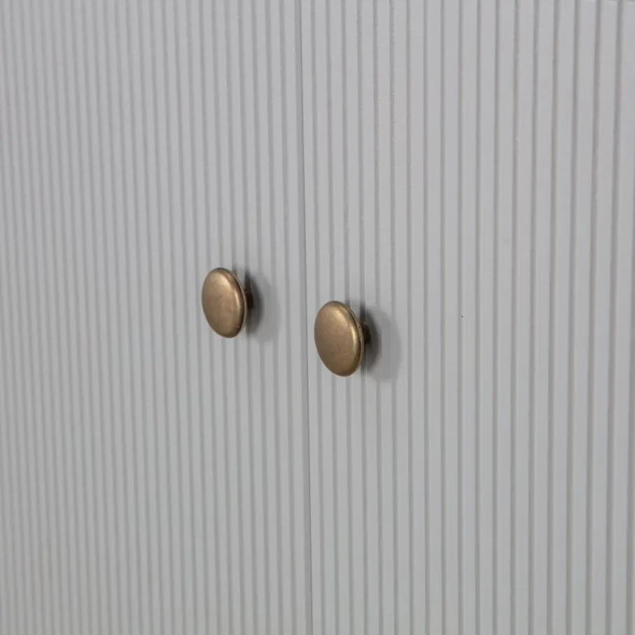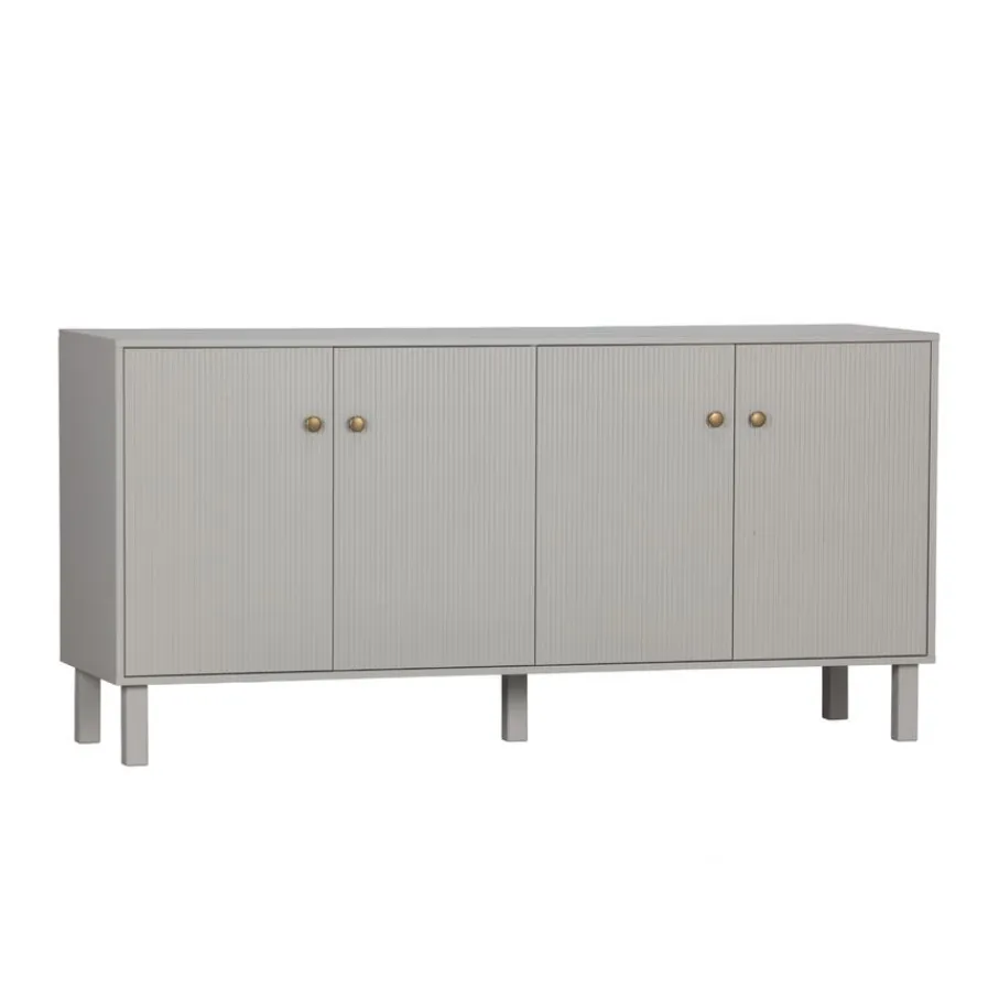 - Geef je interieur direct een moderne, stijlvolle boost met dressoir Madu! De wolkengrijze tint, verticale accenten en goudkleurige knoppen geven jouw woonkamer een chique touch.