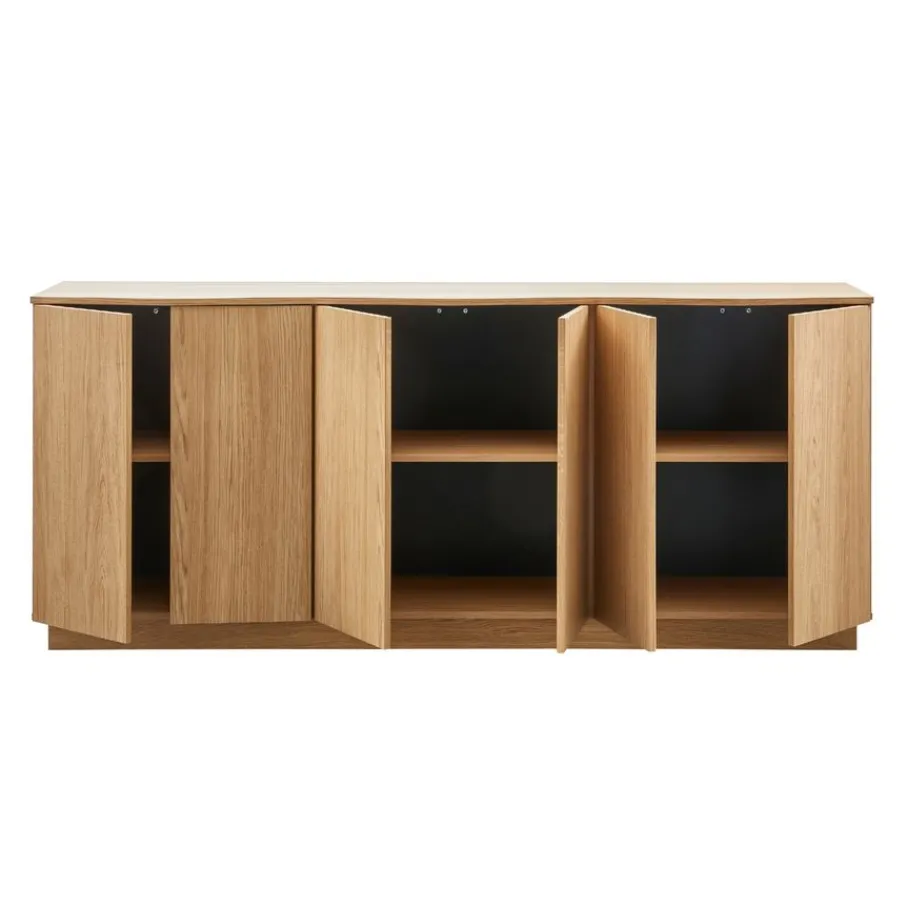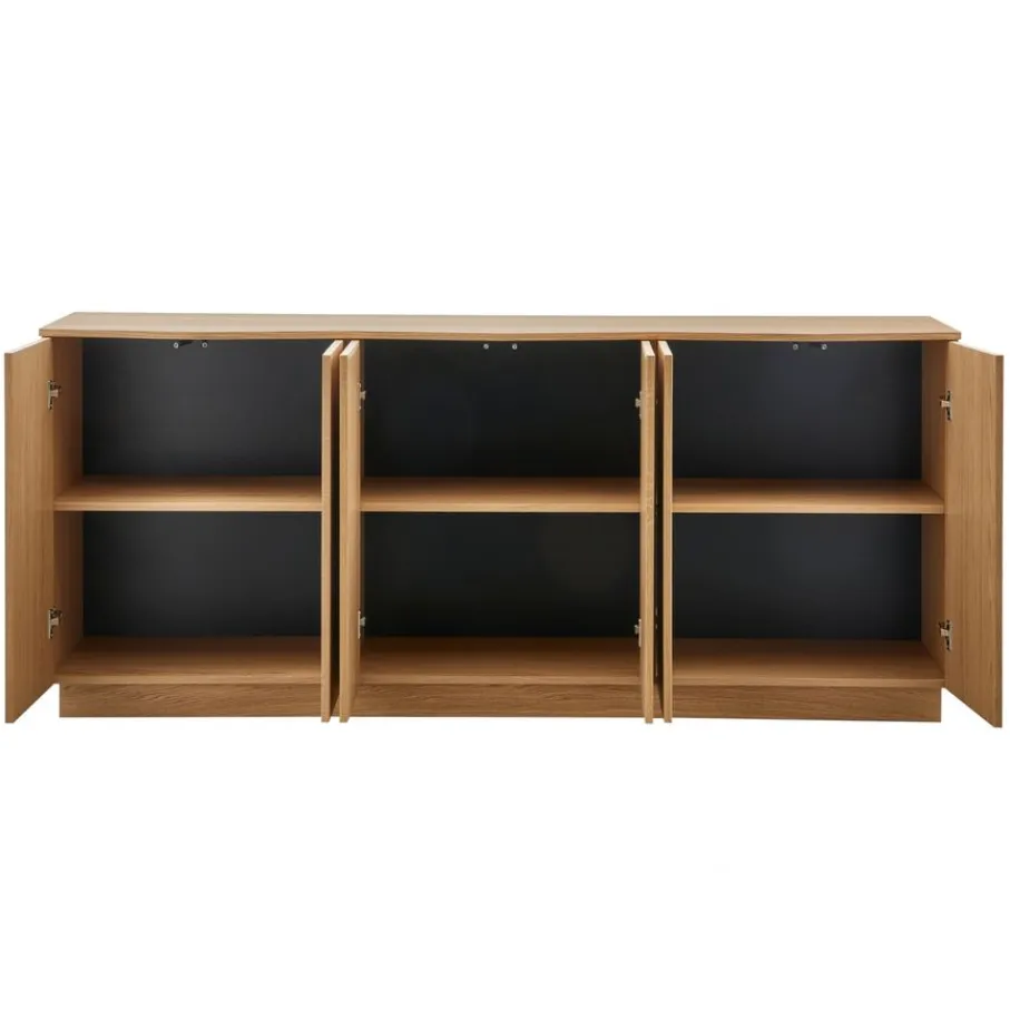Het dressoir heeft ruime opbergvakken, ideaal voor het organiseren van alles wat je uit het zicht wilt hebben. De greeploze deuren zijn voorzien van een luxueus push-to-open systeem. De kast heeft drie dubbeldeurs vakken met een plank erin. Hierdoor ontstaan 6 vakken met een afmeting van 64 cm breed en 36 cm hoog. Het draaggewicht per plank is 10 kg, mits gelijk verdeeld.