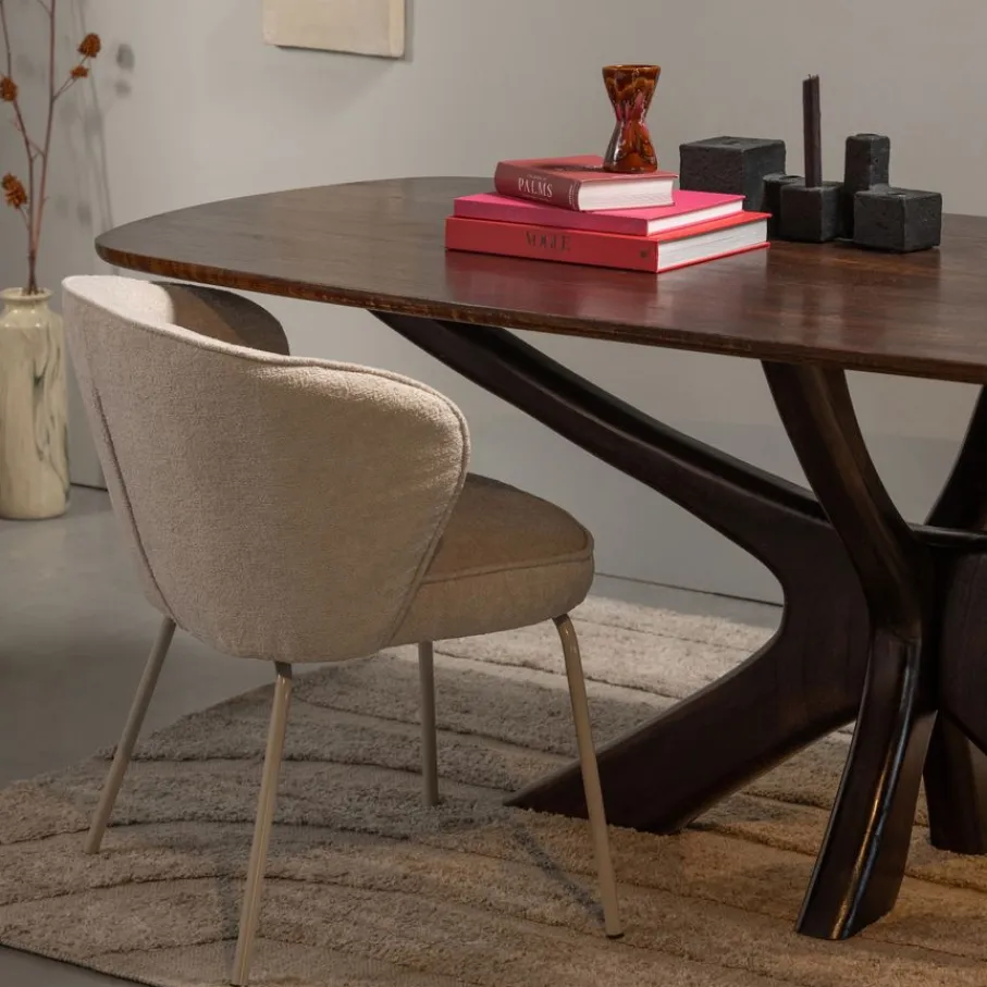 - Vaste opstelling: De stoel heeft geen draaifunctie, maar nodigt juist uit tot een gezellige en vaste plek aan de eettafel.