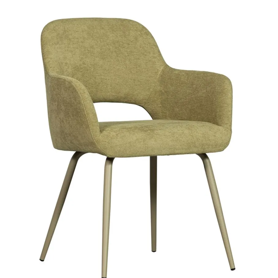 - Stevige metalen poten: Bieden uitstekende stabiliteit en een eigentijds contrast met de groene bekleding.