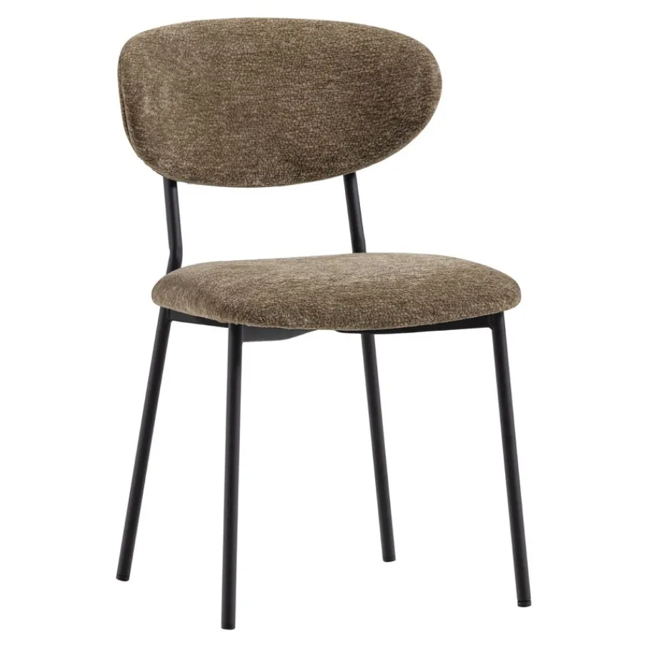 De zachte chenille bekleding van eetkamerstoel Kjeld is van 100% polyester. De combinatie van zachtheid, subtiele glans en stevige kwaliteit maakt deze stof tot een veelzijdige keuze voor zowel moderne als klassieke interieurs. De kleur Groen is een natuurlijke groentint.