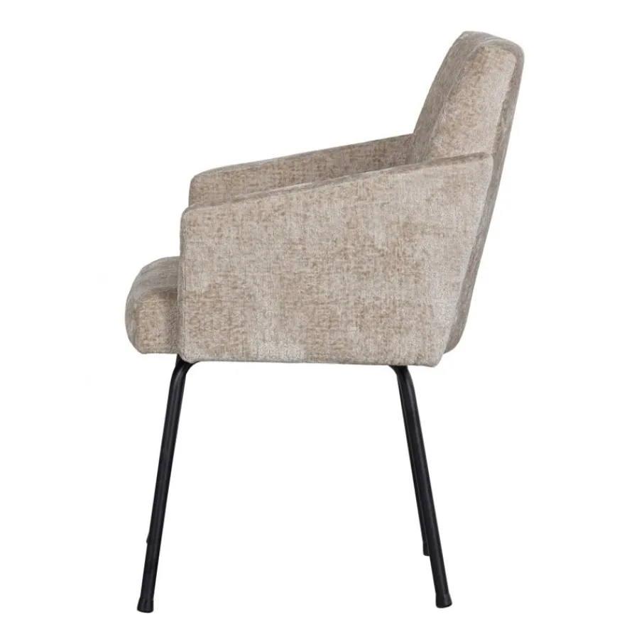 Eetkamerstoel Mount is bekleed met een fluweelzachte chenille stof van 100% polyester. De kleur is een warme naturel tint. De luxueuze vleug zorgt voor mooie kleurnuances. In deze uitvoering is eetkamerstoel Mount makkelijk te combineren in diverse woonstijlen.