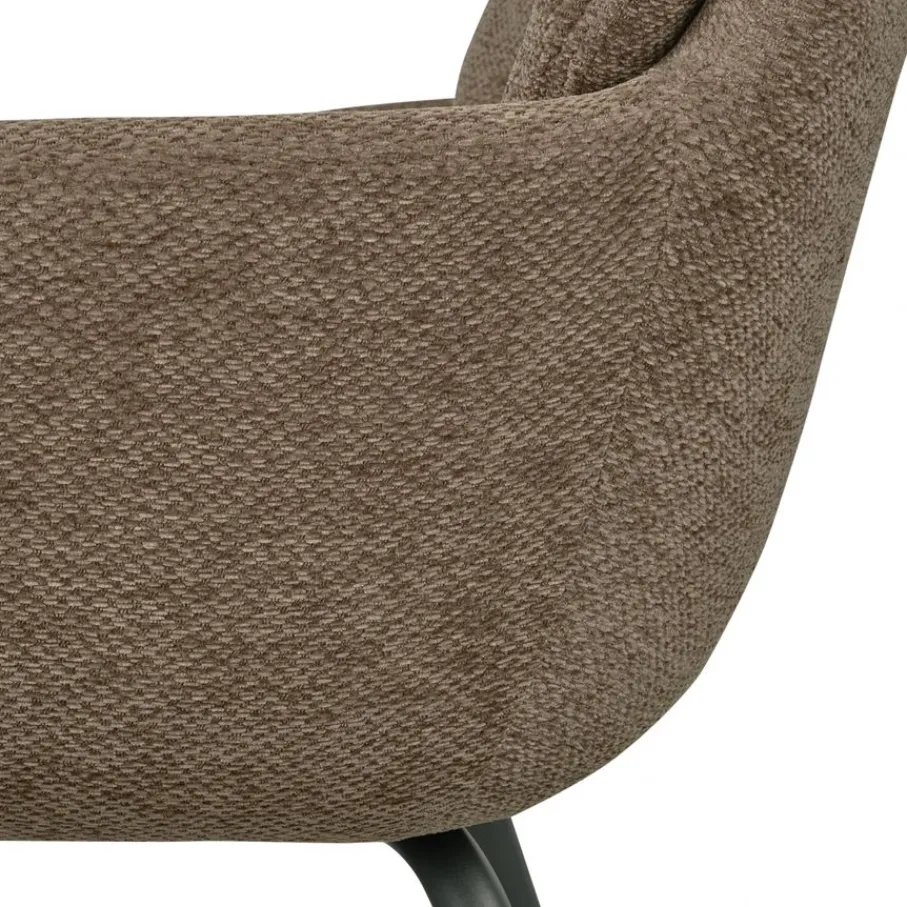 - Een echte blikvanger: Met z’n ronde design en luxe chenillestof brengt deze stoel direct een warme, trendy sfeer in huis.
