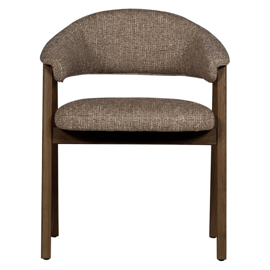 Eetkamerstoel Tunar Bruin van WOOOD sfeer aan de eettafel. Het frame van bruin eikenhout vormt een fraaie combinatie met de bruine, robuust geweven bekleding. Dankzij het open design met een retro tintje past de stoel in diverse woonstijlen. Met een brede zit biedt eetkamerstoel Tunar een uitnodigende plek om aan te schuiven voor een diner met vrienden of familie.