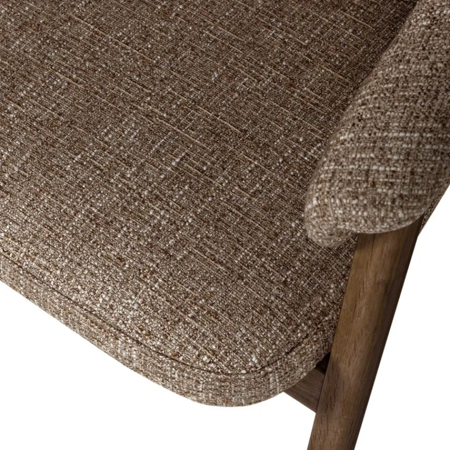 De zitting en rugleuning zijn bekleed met stof Fling in melange van bruintinten. Deze stof heeft een zachte grip met een robuuste uitstraling, en bestaat uit 100% polyester. Met een Martindale-score van 25.000 is het slijtvast en geschikt voor intensief woongebruik.
