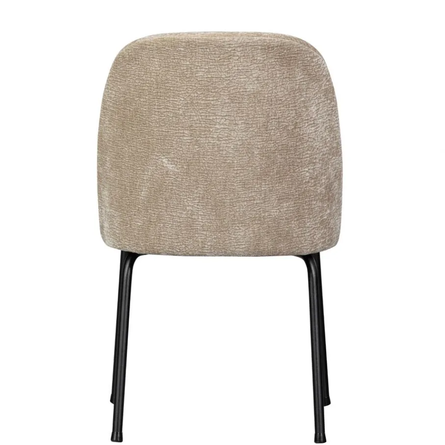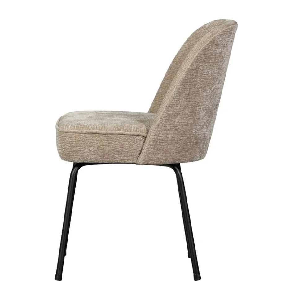 Deze Vogue eetkamerstoel is bekleed met een zachte chenille stof in de kleur Sand, een warme beige tint. De structuur stof is gemaakt van 100% polyester en heeft een zachte en aangename grip.