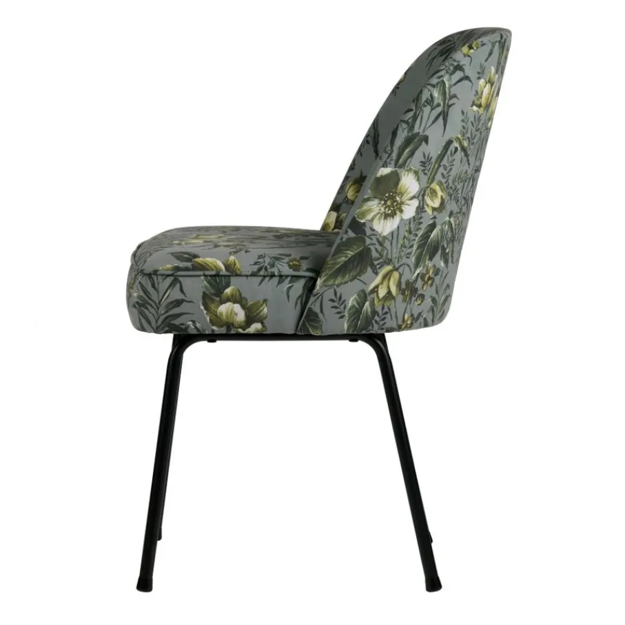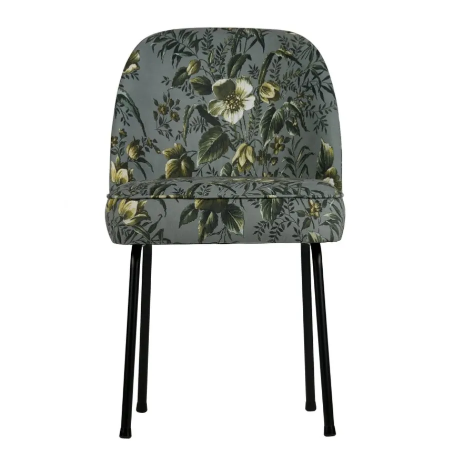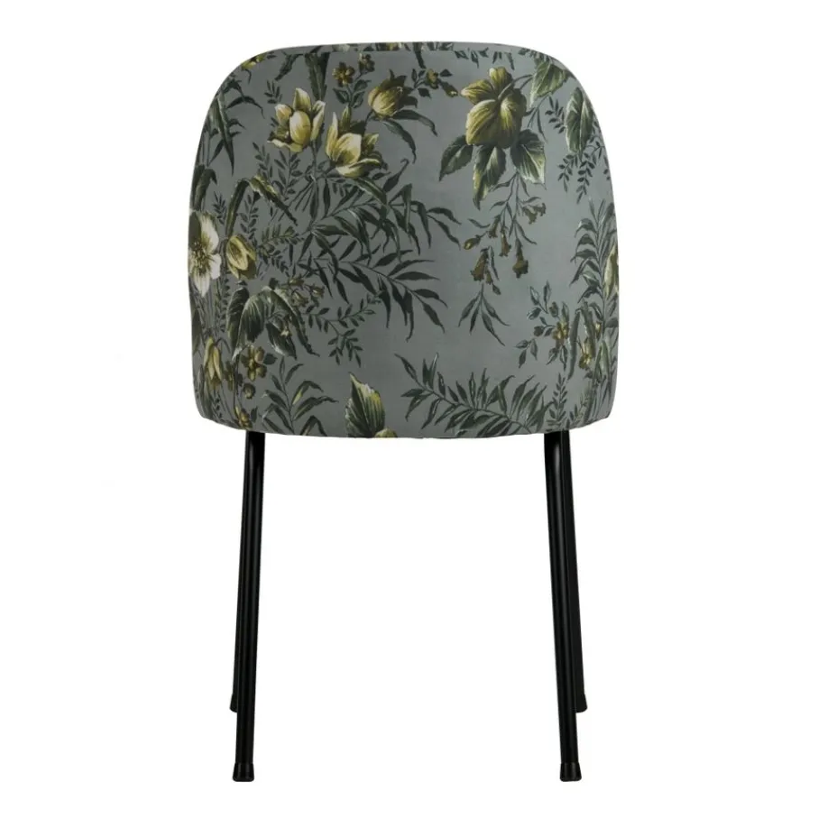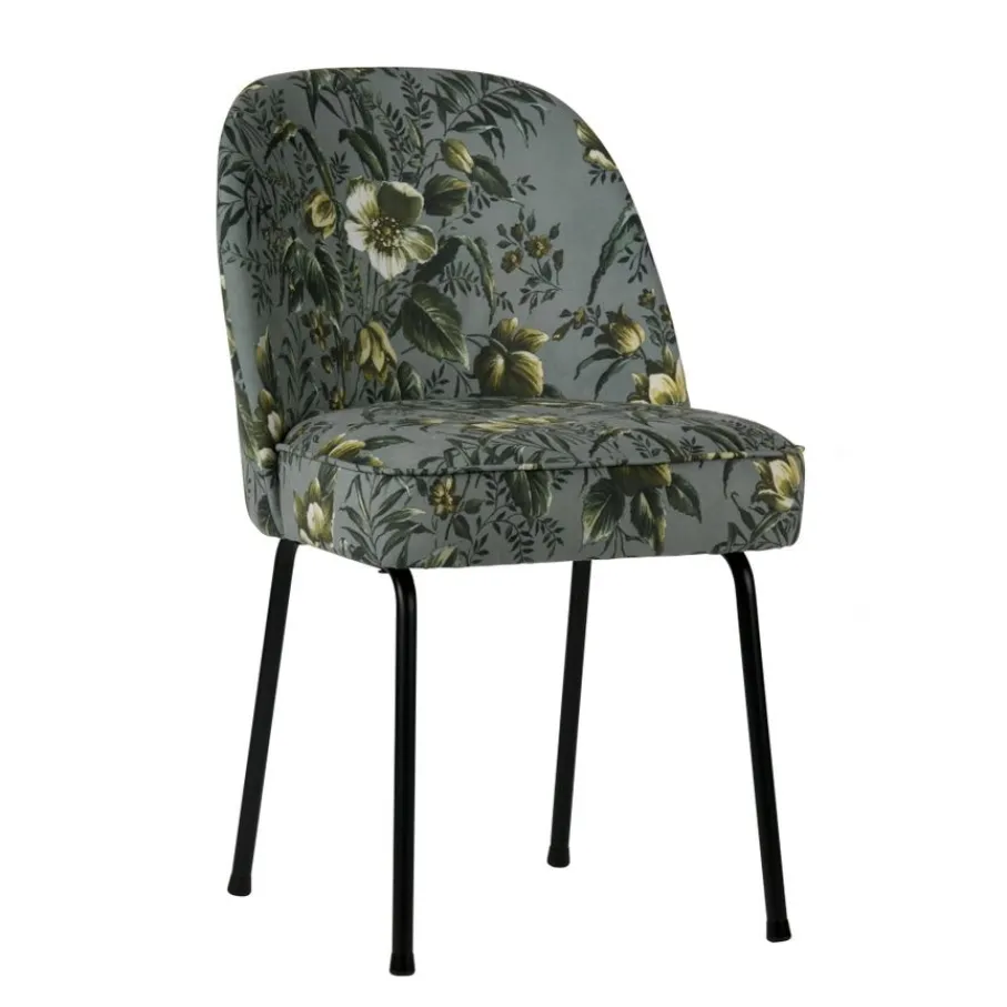 Deze mooie stoel is bekleed met een zachte velvet stof in de kleur Poppy Grey, een grijze kleur met een multi color bloemenprint. De stof is gemaakt van 100% polyester, een stof die niet snel verkleurt of verslijt.