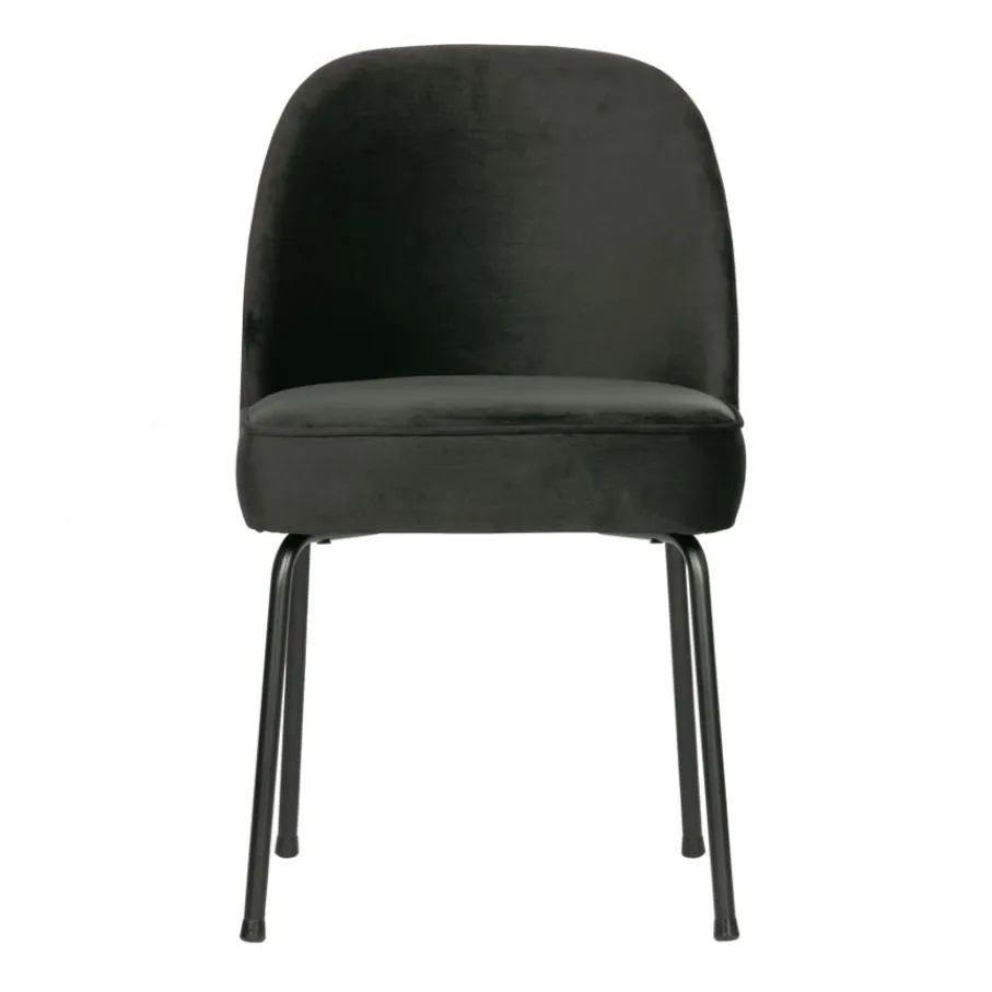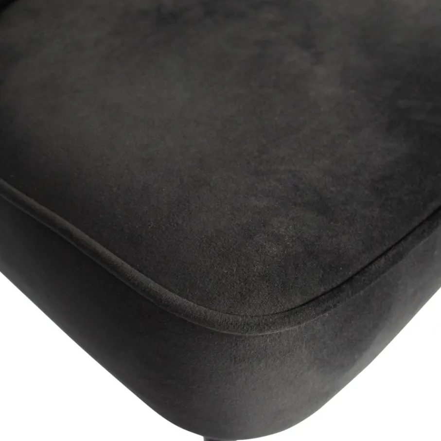 Deze mooie stoel is bekleed met een zachte velvet stof in de kleur zwart. De stof is gemaakt van 100% polyester, een stof die niet snel verkleurt of verslijt.