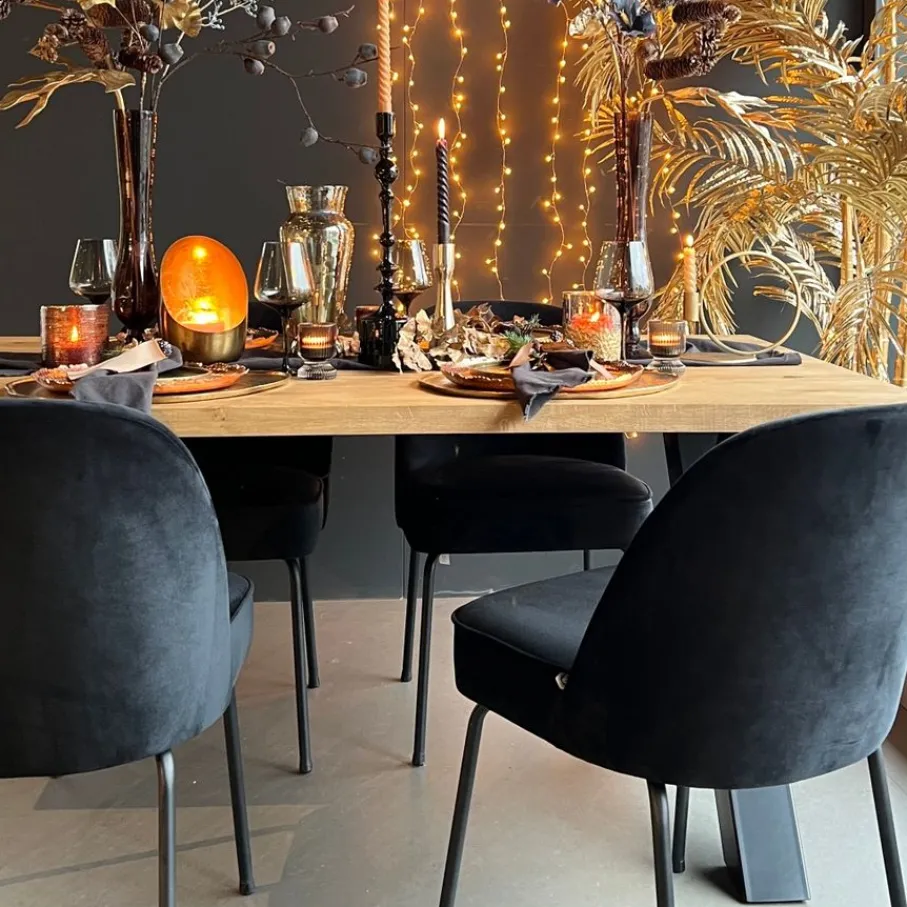 - Trendy en stijlvolle uitstraling: De zwarte velvet bekleding voegt een luxueuze touch toe aan elke eetkamer.