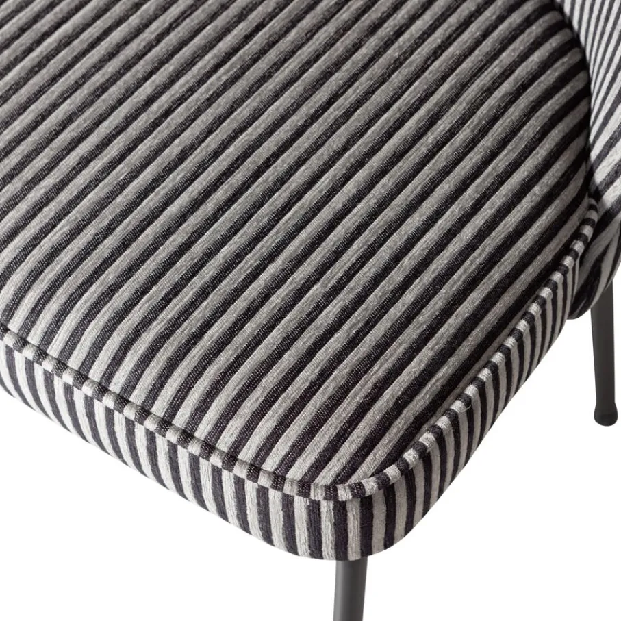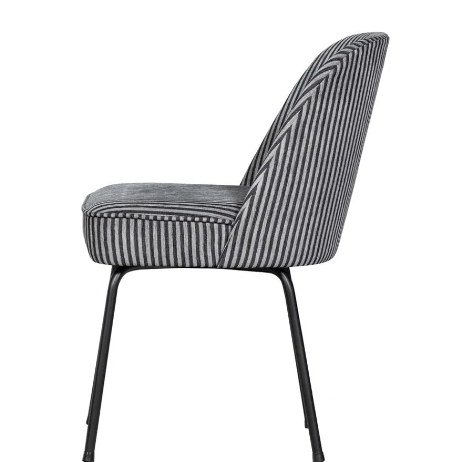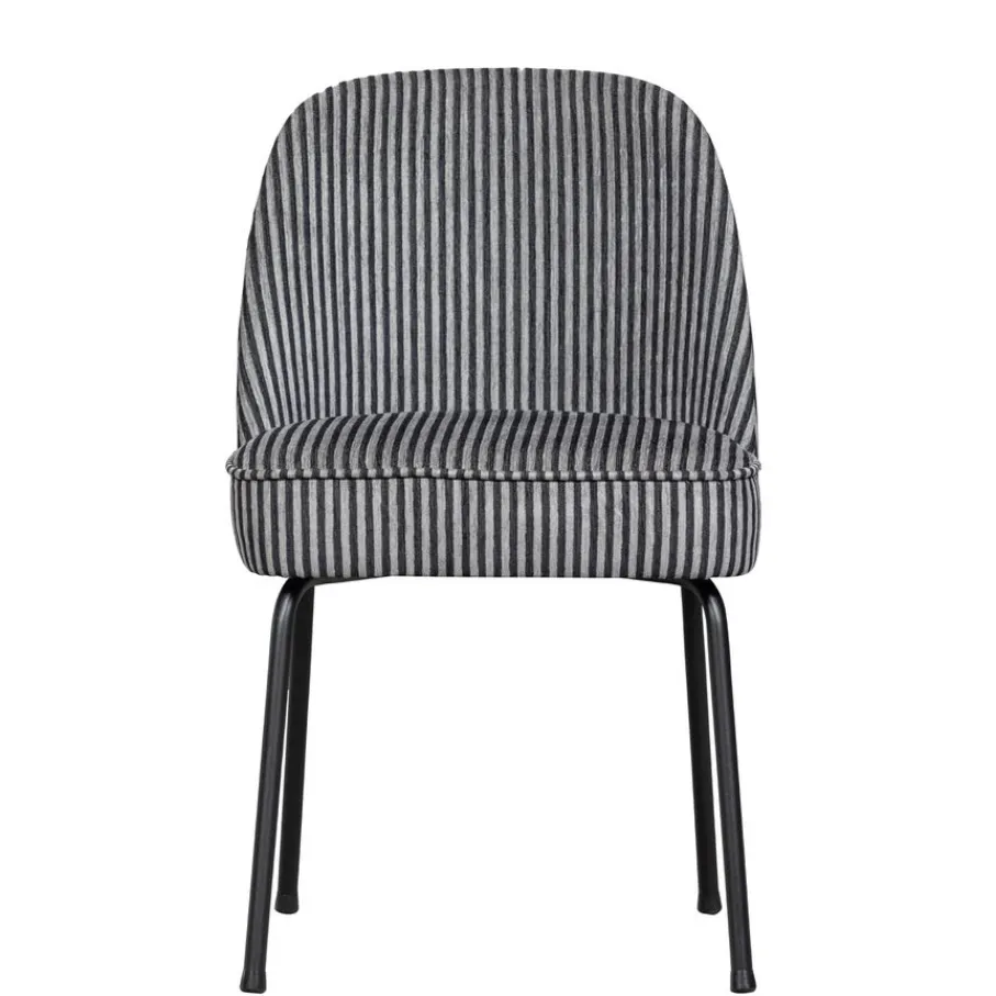 Deze Vogue eetkamerstoel is bekleed met een zachte stof met een gestreept patroon in zwart/grijs. De stof is gemaakt van 48% polyester, 31% rayon en 21% katoen. Het heeft een aangename grip en een volle en rijke uitstraling.