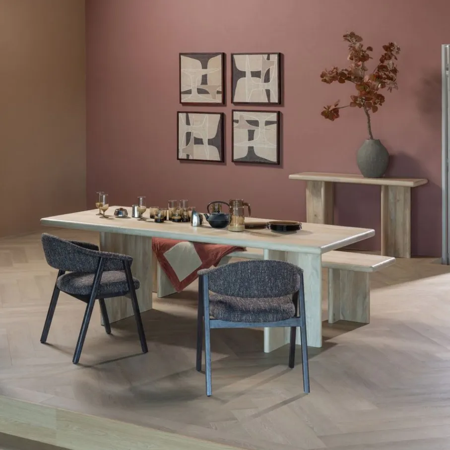 - Een royale tafel voor veel gezelligheid: Met een breedte van 220 cm en een diepte van 90 cm vraagt deze eettafel om een fijne plek waar hij volledig tot zijn recht kan komen.