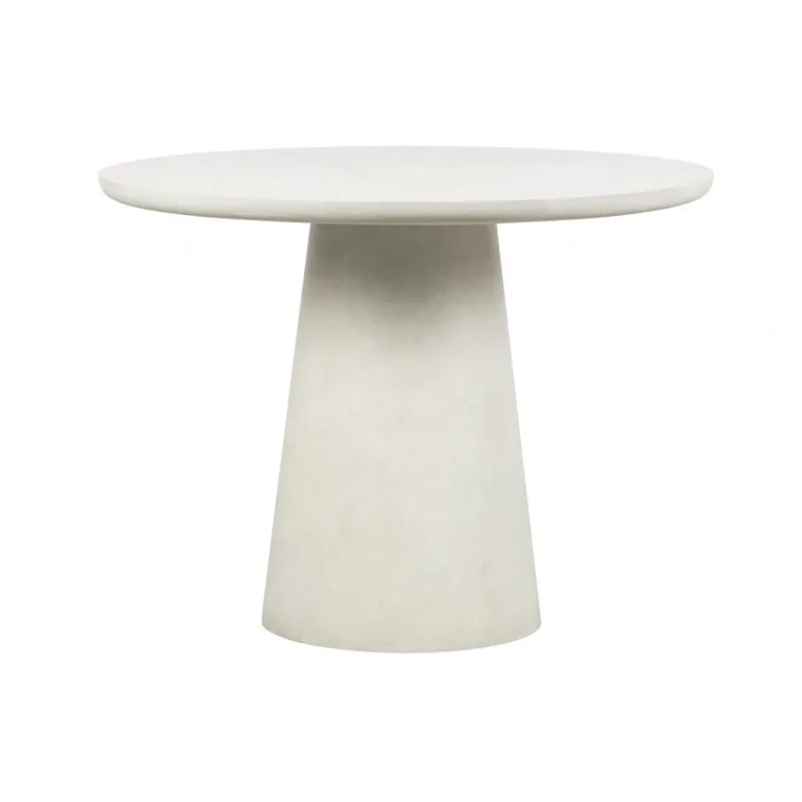 De Damon eettafel heeft een diameter van 100 cm en is 76 cm hoog. Het tafelblad heeft een dikte van 4 cm. De poot is hol en gemaakt van een centimeter dik fiberclay. De poot is onderaan Ø45 cm en bovenaan bij het tafelblad Ø28 cm. De tafel moet nog gemonteerd worden.