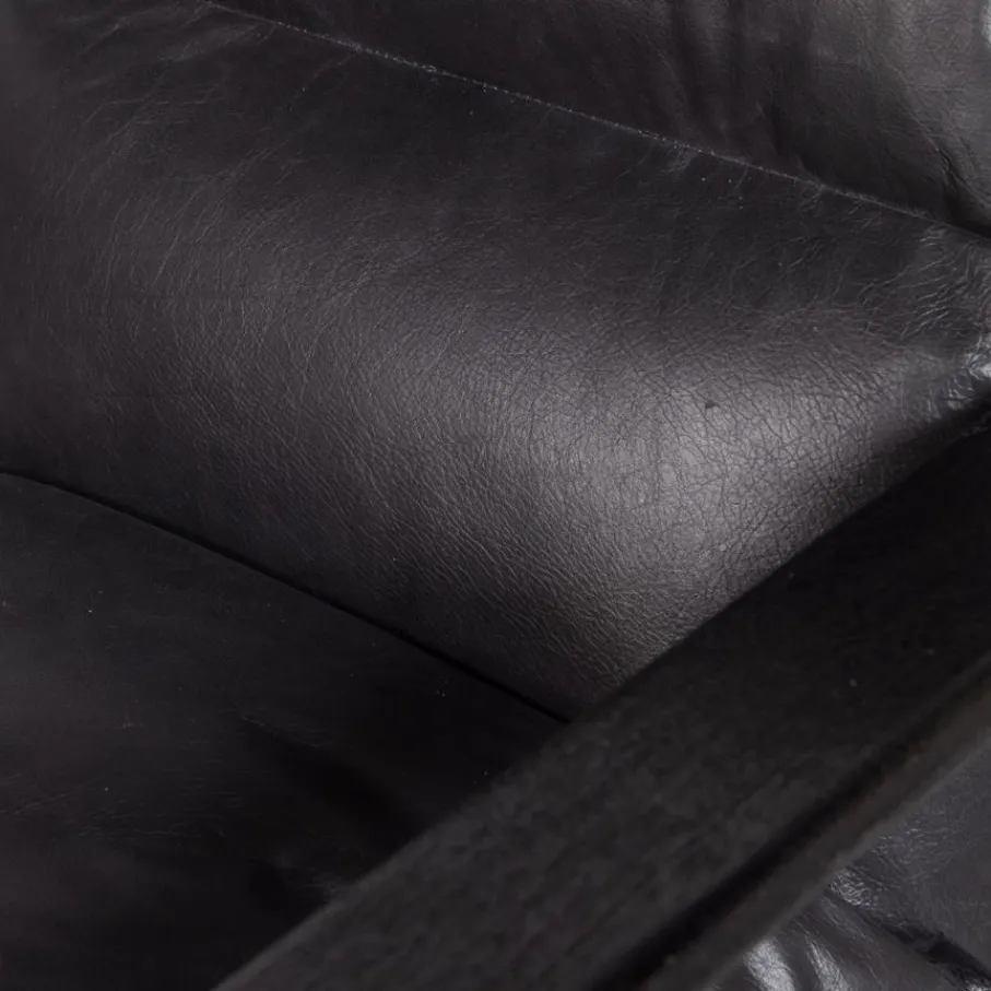 De lederen zitting heeft een gladde grip en een lichte glans. De diepzwarte tint van het leer zorgt voor een luxe uitstraling. Leer blijft gevoelig voor direct zonlicht en vocht, dus een zorgzaam onderhoud is aangeraden. Vermijd direct zonlicht om verkleuring en uitdroging te voorkomen. Behandel het regelmatig met een speciale Leather Protector voor een duurzaam gebruik.