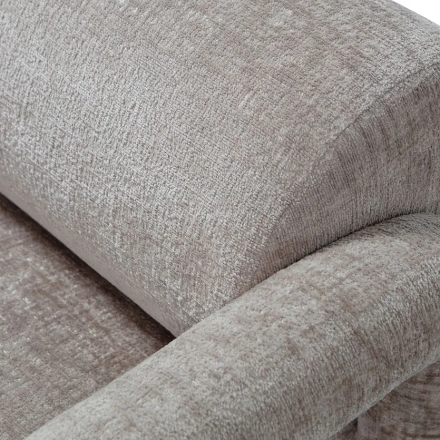 Lenny is bekleed met luxueuze velvet van 100% polyester. Het heeft een onregelmatig polenpatroon met een grove structuur. De zachte stof heeft een Martindale van 40.000 en is dus goed bestand tegen lussen, verkleuring en slijtage. Een perfect materiaal voor intensief woongebruik. De kleur Sand is een neutrale naturel kleur en de subtiele glans zorgt voor fraaie kleurschakeringen.