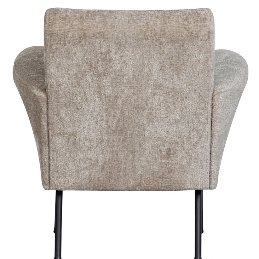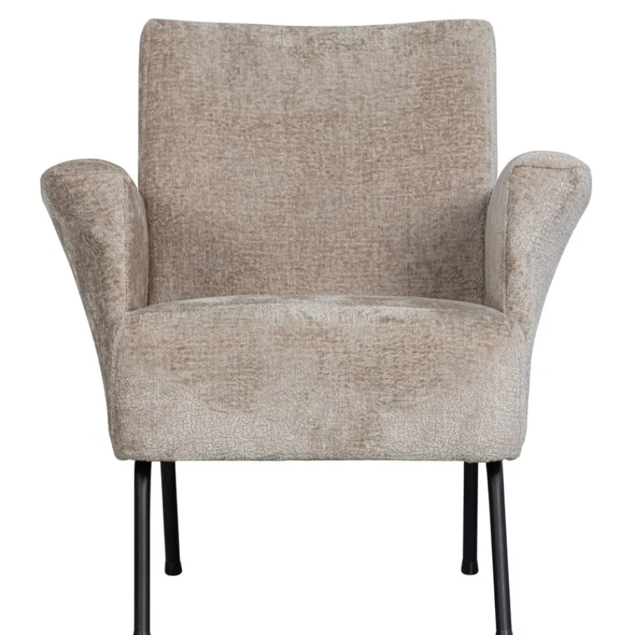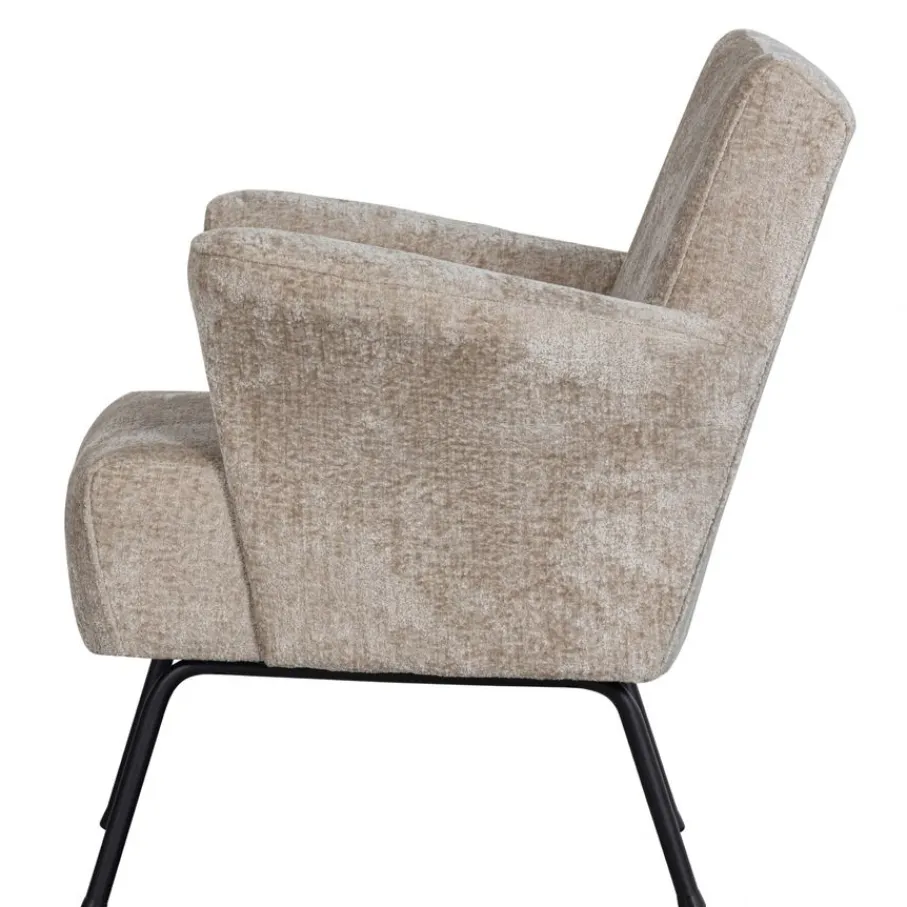 - Modern design met een luchtige uitstraling: Het slanke matzwarte metalen onderstel geeft deze fauteuil een eigentijdse look en laat hem gemakkelijk stralen in jouw interieur.