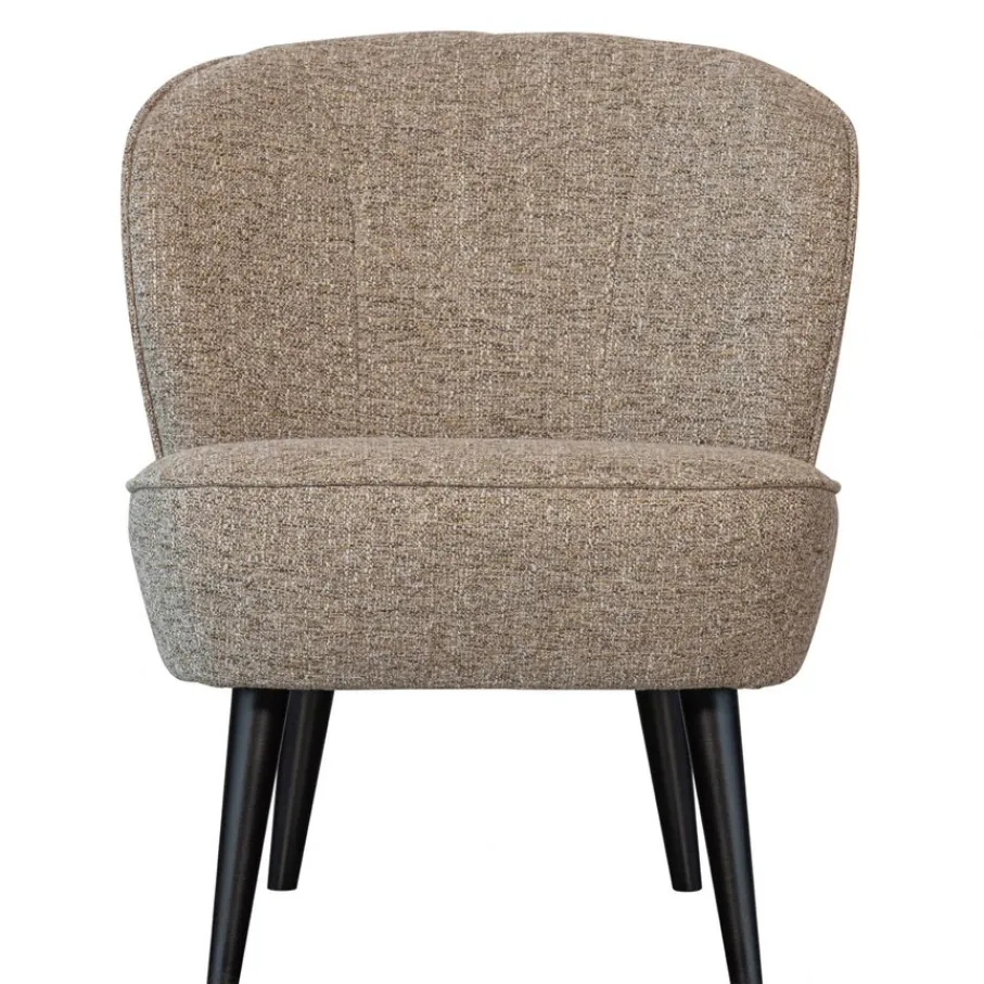 - Luchtig en elegant design: Dankzij de hoge, slanke houten poten met zwarte afwerking voegt deze fauteuil zich moeiteloos in elke woonruimte zonder zwaar te ogen.