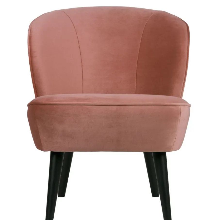 Sara is bekleed met een lichtglanzende velvet in kleur Pink. De stof is van 100% polyester en heeft een volle en zware kwaliteit. Het voelt zacht aan en heeft een mooie lichte glans. Met een Martindale van 100.000 is het geschikt voor intensief woongebruik.
