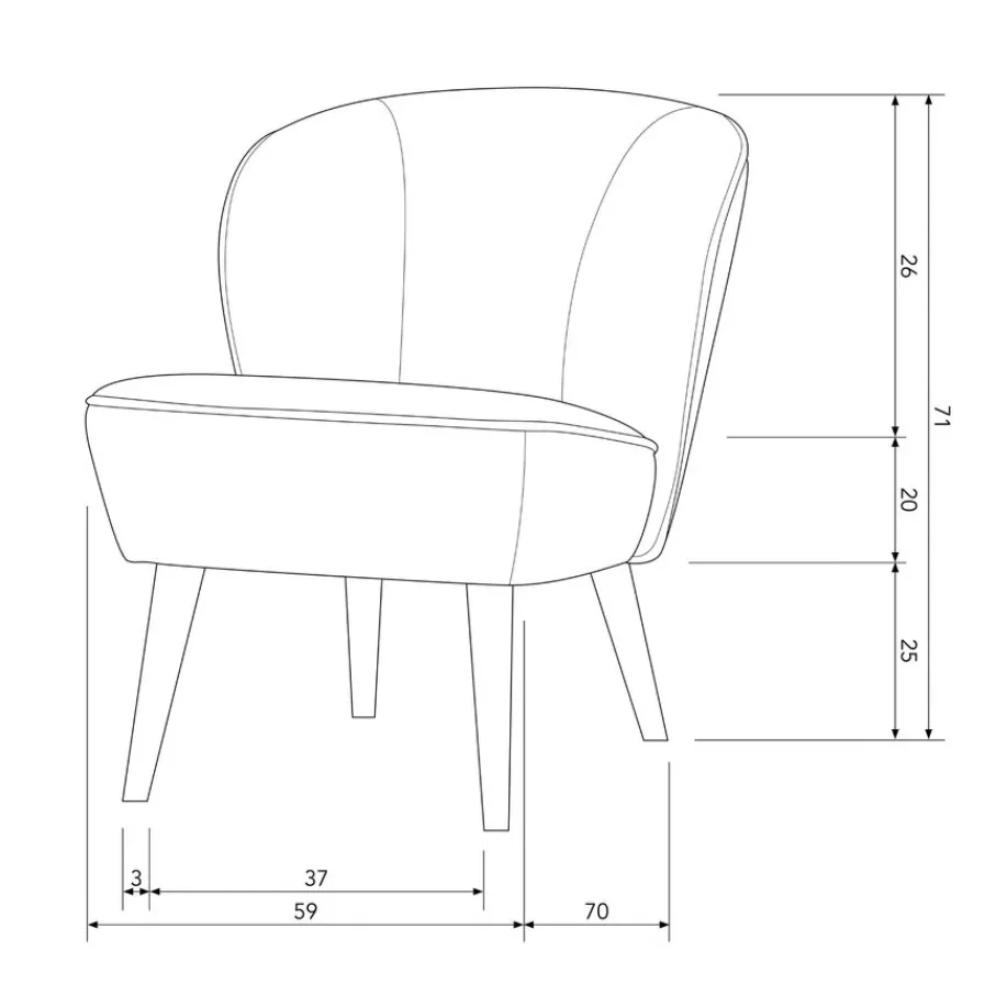 - Een compact design, ideaal voor knusse hoekjes: Perfect als je op zoek bent naar een stijlvolle stoel die niet te veel ruimte inneemt, maar wel maximale gezelligheid brengt.