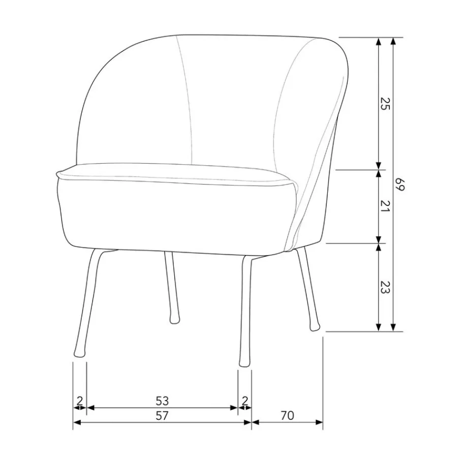 Het frame van de zitting is opgebouwd uit een combinatie van spaanplaat, multiplex en elastische riemen. De schuim vulling zorgt voor een iets stevig zitcomfort. Met een zitdiepte van 44 cm en zithoogte van 44 cm is fauteuil Vogue goed voor urenlang zitplezier.