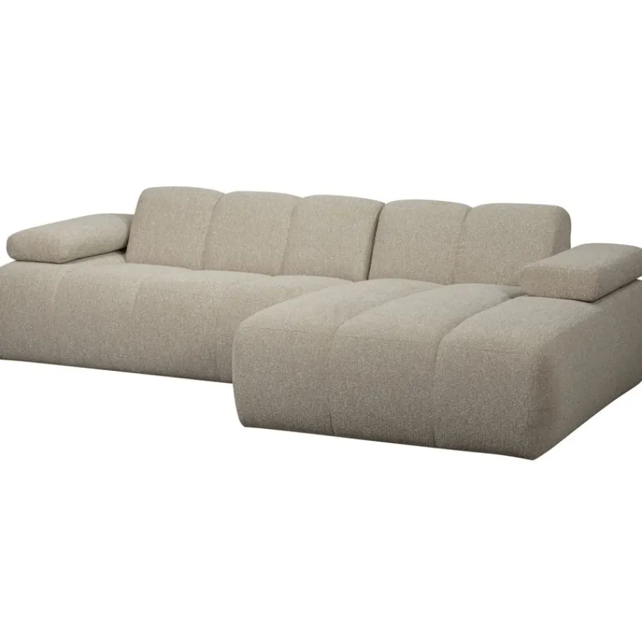 Hoekbank Mojo heeft rechts een brede chaise longue. Hiermee ontstaat een ruime zitbreedte van 213 cm. De chaise lounge heeft een zitdiepte van 124 cm en de gewone zitplekken zijn 60 cm diep. Met een zithoogte van 45 cm is het goed vertoeven op deze bank. Het maximale draaggewicht is 120 kg per zitplaats. Voor extra comfort heeft Mojo verstelbare armleuningen, perfect om aan te passen naar de houding die jou op dat moment het beste past.